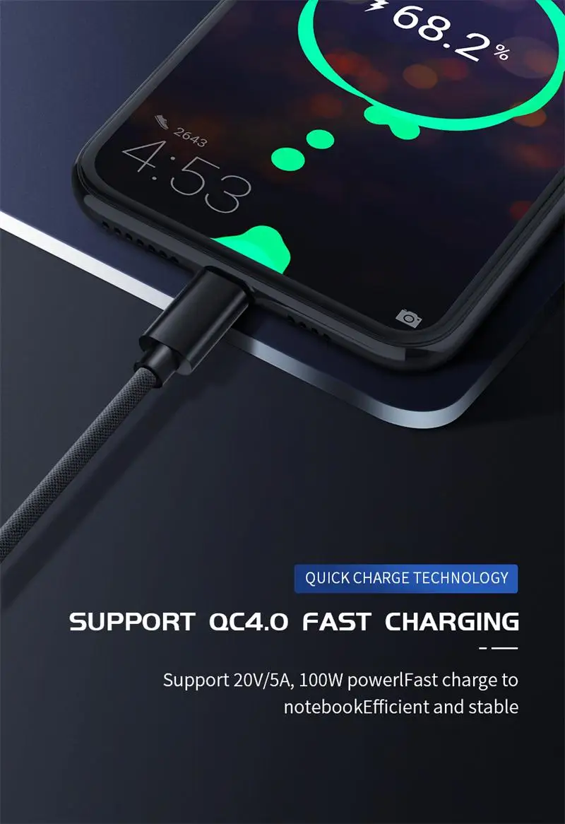 Кабель-Переходник USB Type-CMicro USB 5A, PD 100 Вт, QC4.0, для Macbook, Samsung, Xiaomi, Huawei