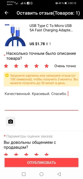 Страна: FR Color: red 1m Доставка: Cainiao Super Economy Global 08.01.2021
