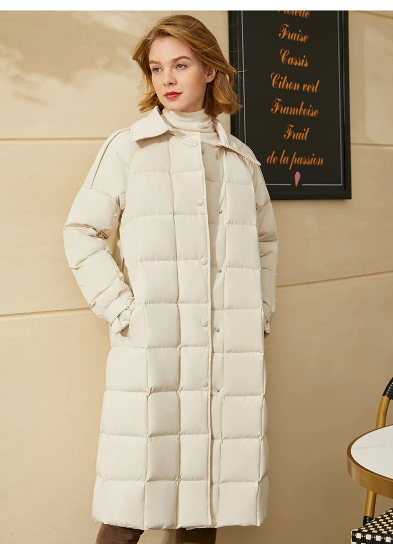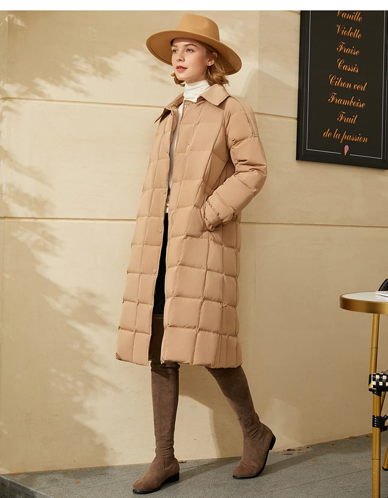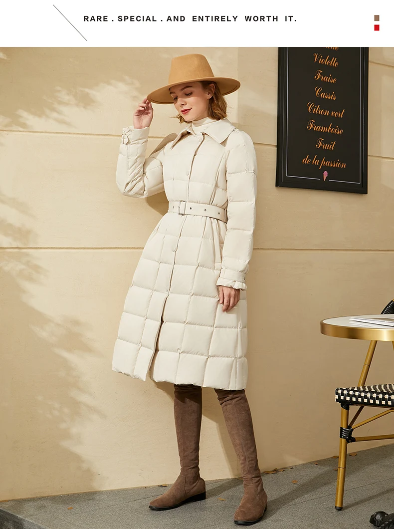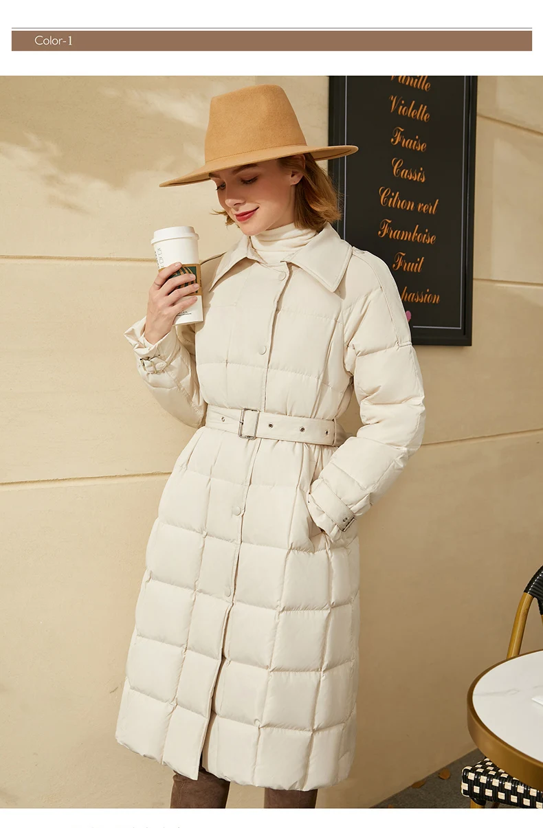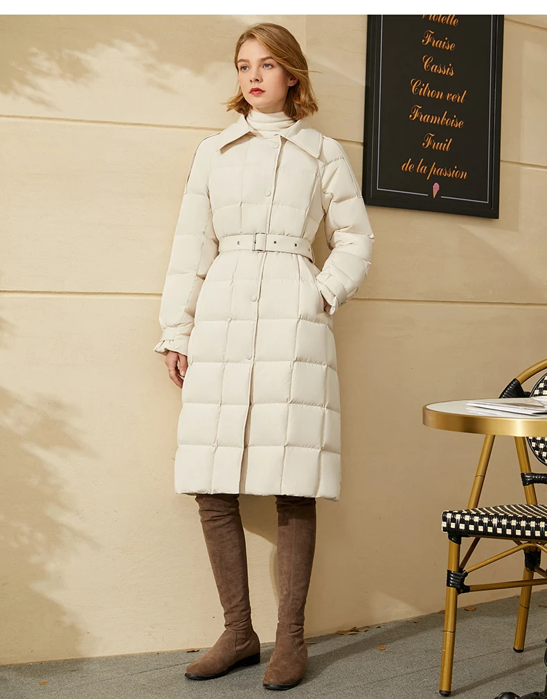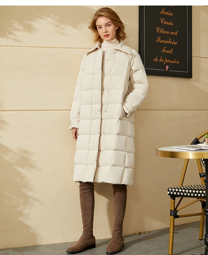Куртка женская зимняя на 90% белом утином пуху с лацканами, 12070475