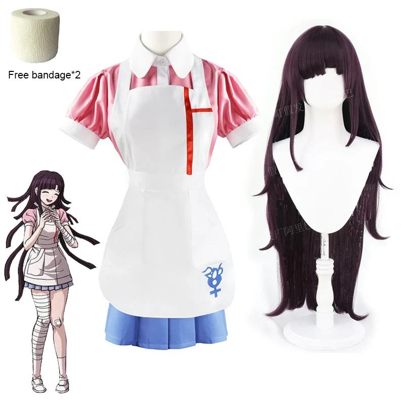 Костюм для косплея Mikan Tsumiki, Danganronpa 2, парик, женский наряд горничной, Хэллоуин, карнавальные костюмы, аниме, для взрослых, унисекс