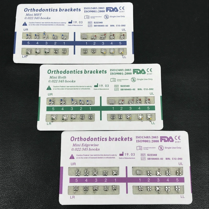 Зубные ортодонтические металлические скобы, 10 упаковок, мини-Крючки RothMBTEdgewise 022, 3, 4, 5