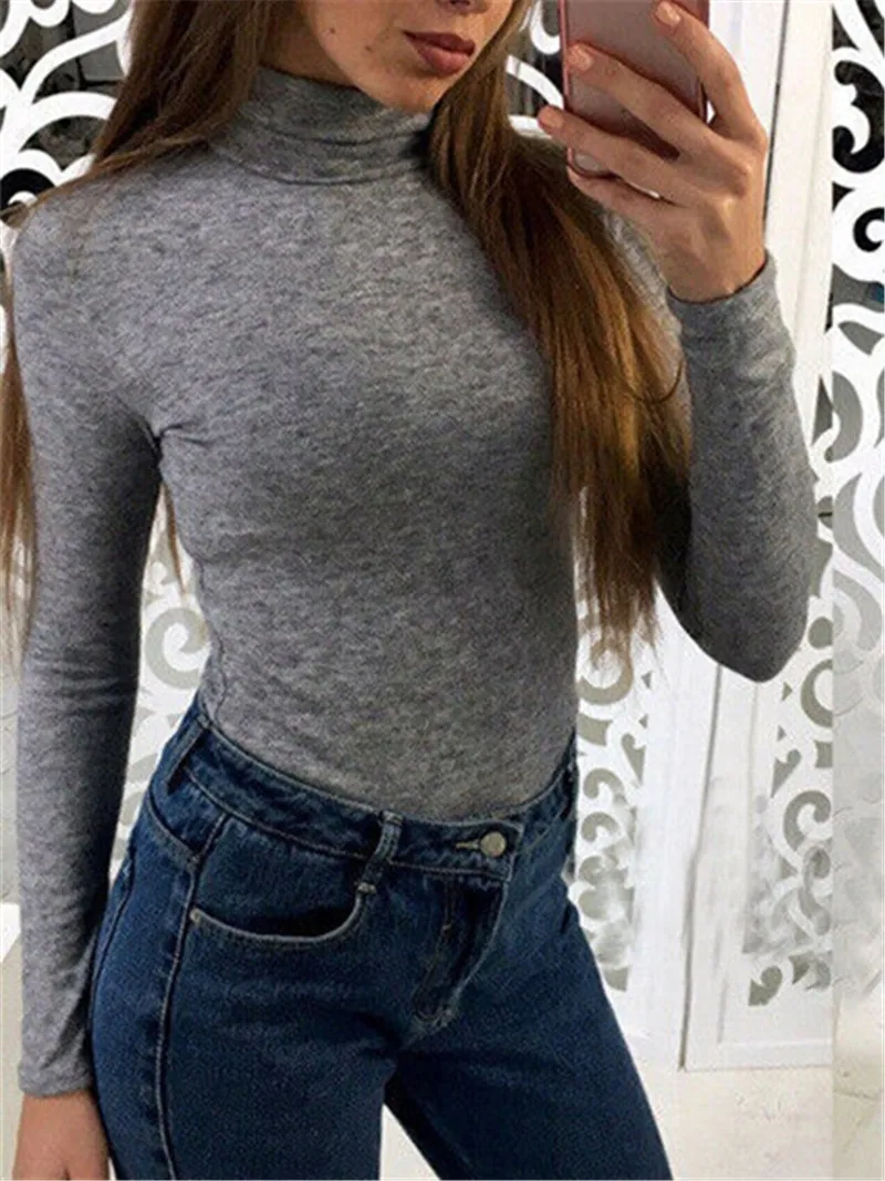 Женская футболка с высоким воротом, однотонная теплая Базовая рубашка из молочного шелка с длинным рукавом, 2020