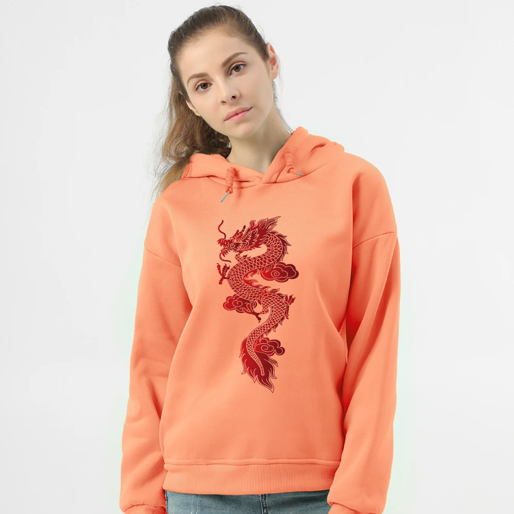 Зимние женские толстовки Ulzzang Harajuku, винтажный пуловер с принтом китайского красного дракона, свитшоты в стиле хип-хоп, панк, уличная одежда для пар