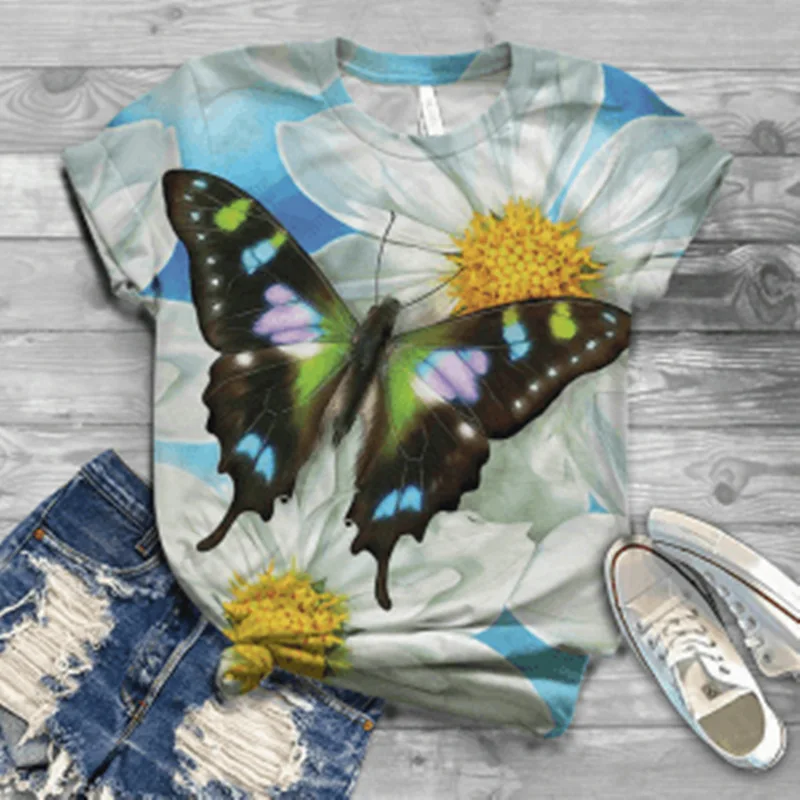 Женская футболка с коротким рукавом и 3D-принтом животных, с круглым вырезом