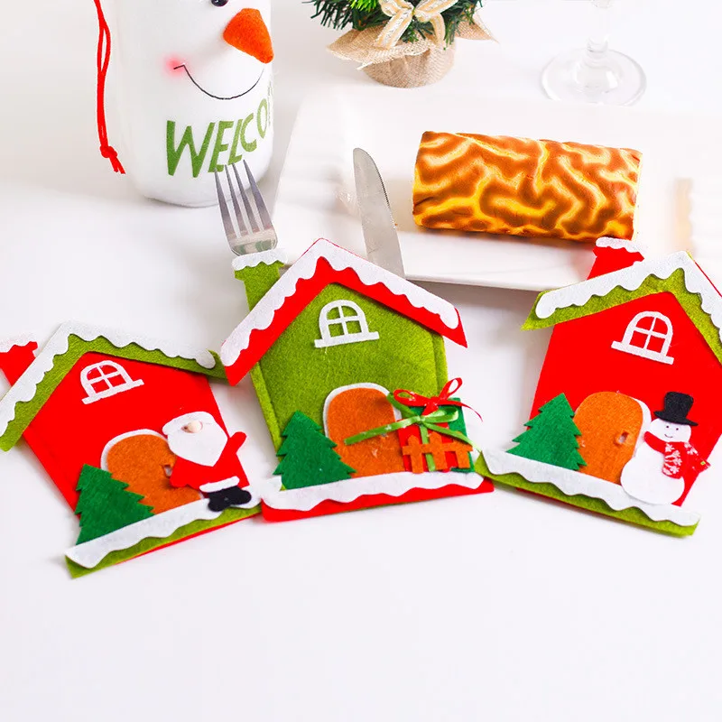 Рождество 2021, держатель для столовой посуды, сумка, ножи и вилки,...