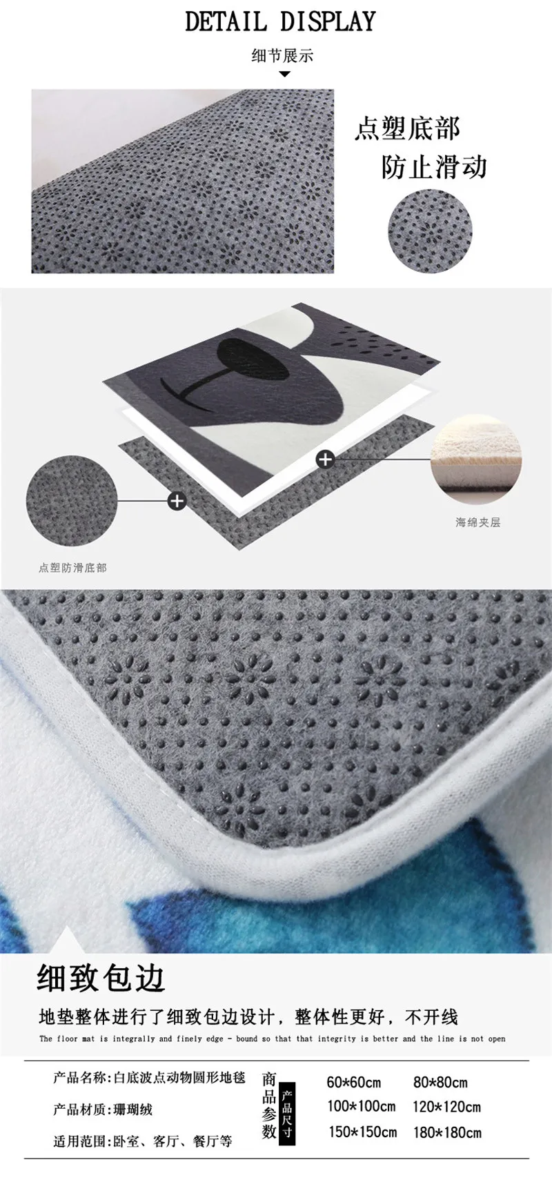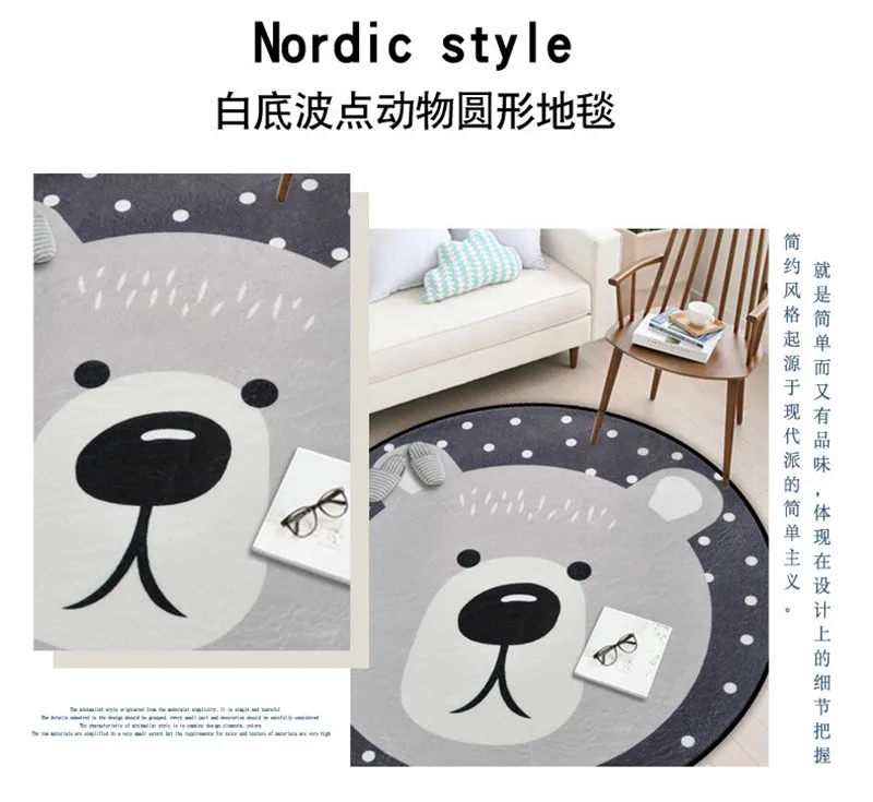 Круглые ковры в белый горошек с мультяшными животными для гостиной,...