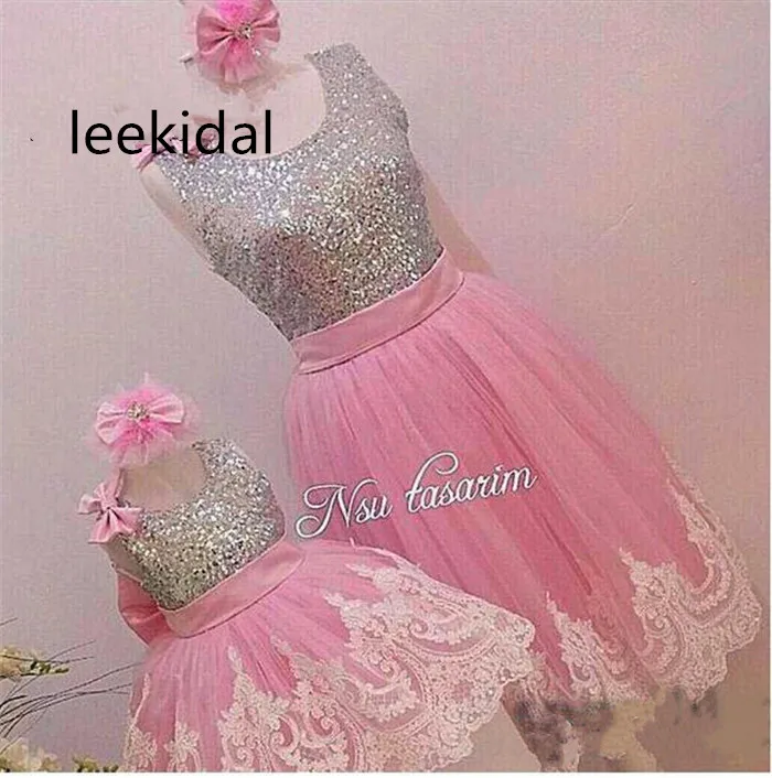 Розовые платья для мамы и дочки белые кружевные Серебристые платья с блестками и открытой спиной платье для мамы для девочек на выпускной вечевечерние