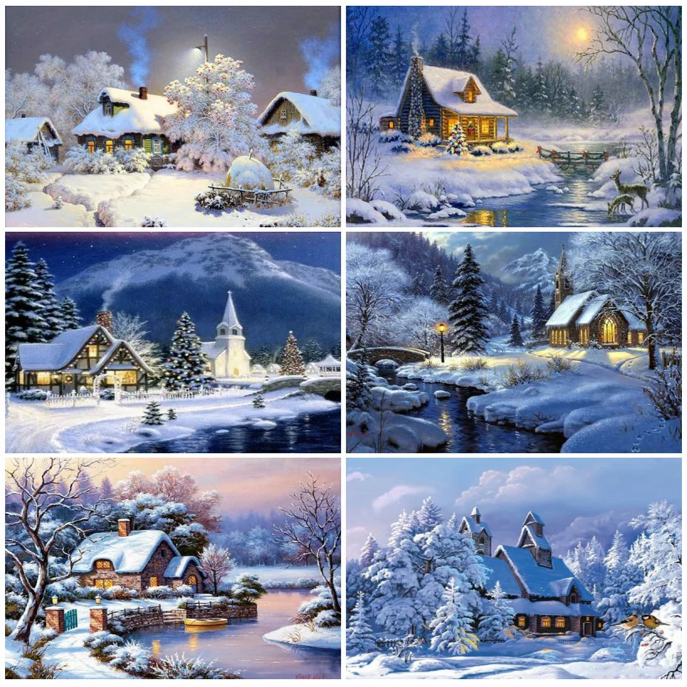 Алмазная картина с изображением дома, вышивка крестиком, пейзажная мозаика, набор для зимнего рукоделия, подарок на стену
