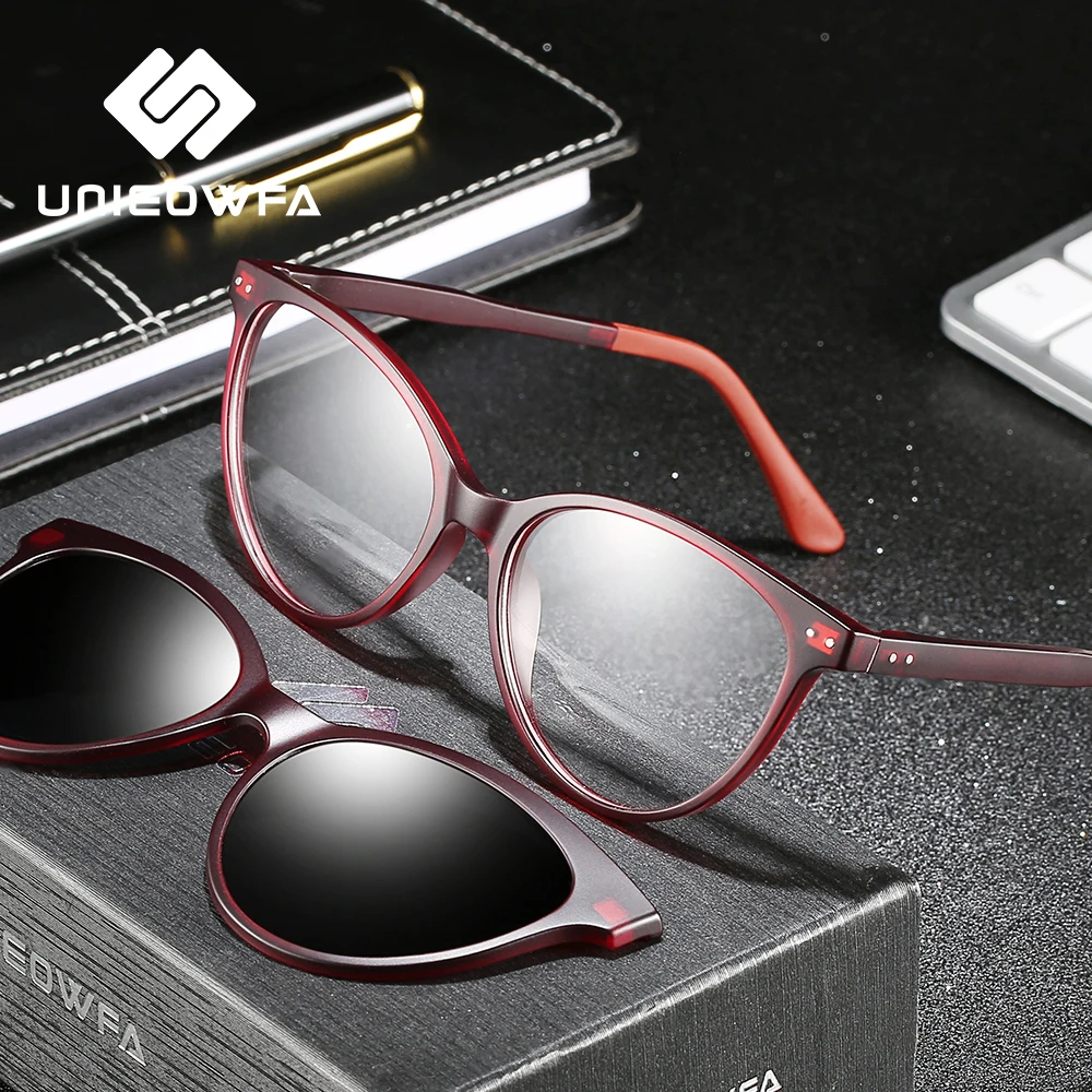 Женские солнцезащитные очки кошачий глаз с магнитной застежкой в стиле ретро, поляризационные, UV400, Оптические солнцезащитные очки для женщин, винтажные очки по рецепту для женщин