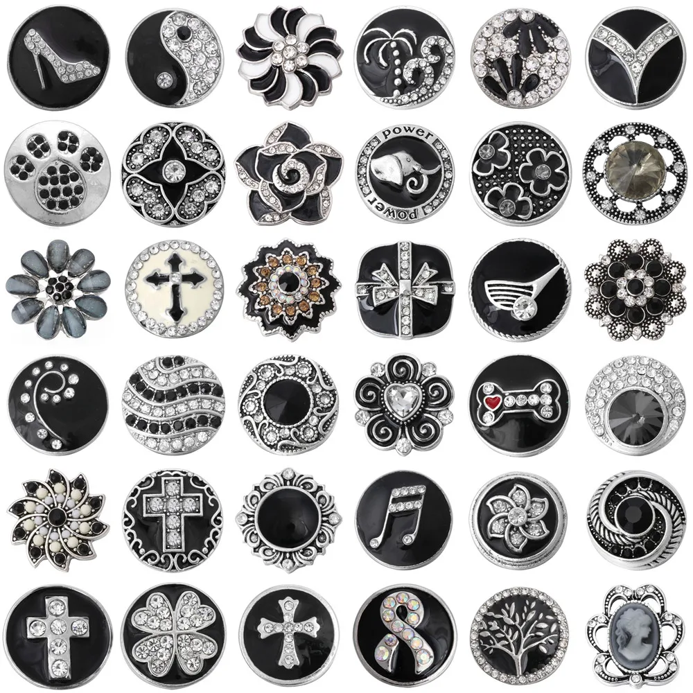 6 шт.лот Новые 18 мм кнопки ювелирные изделия Стразы смешанные черн...