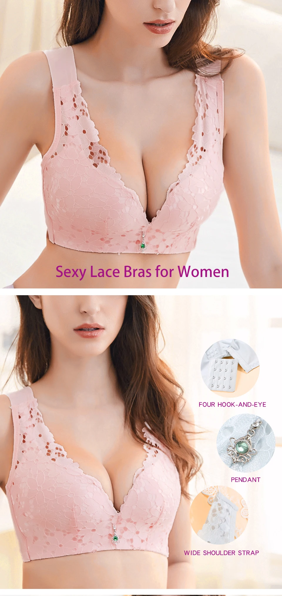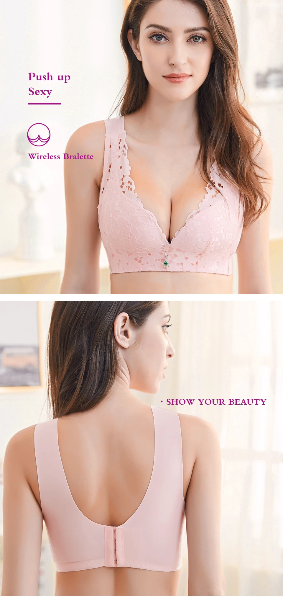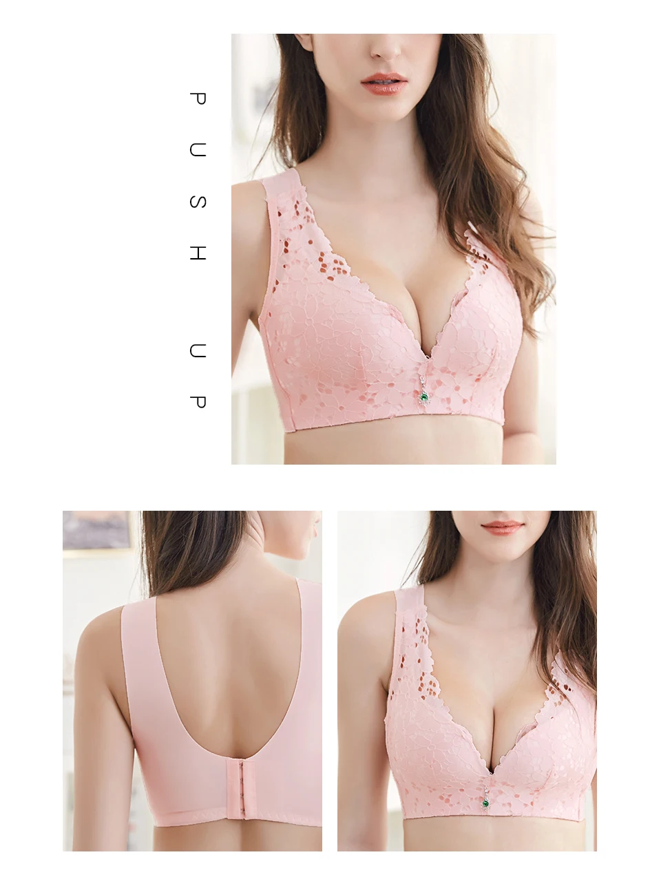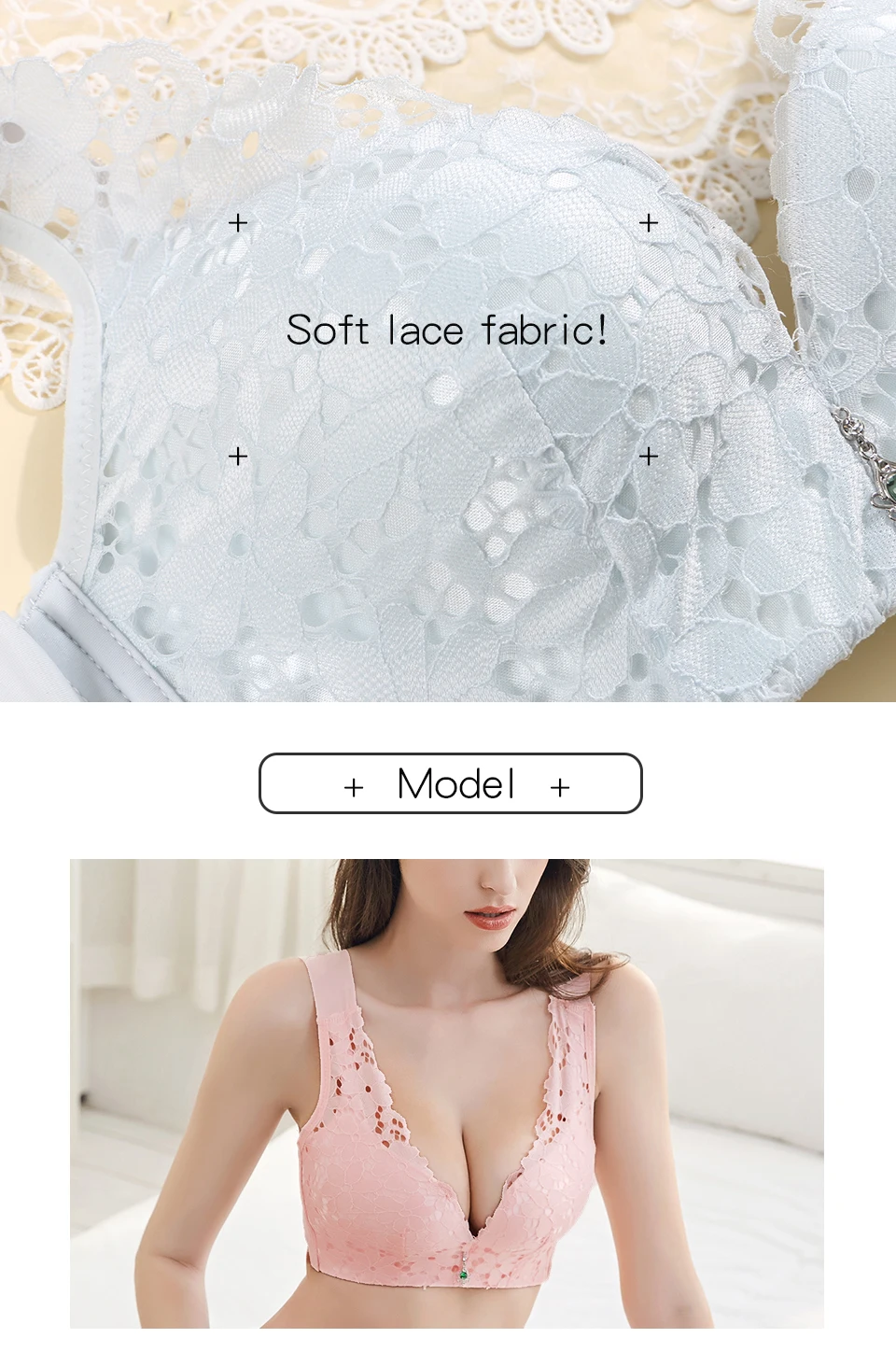 Бюстгальтер женский кружевной без косточек, пуш-ап, с глубоким V-образным вырезом, 34-42