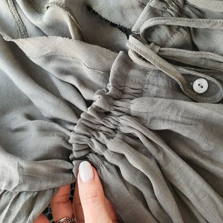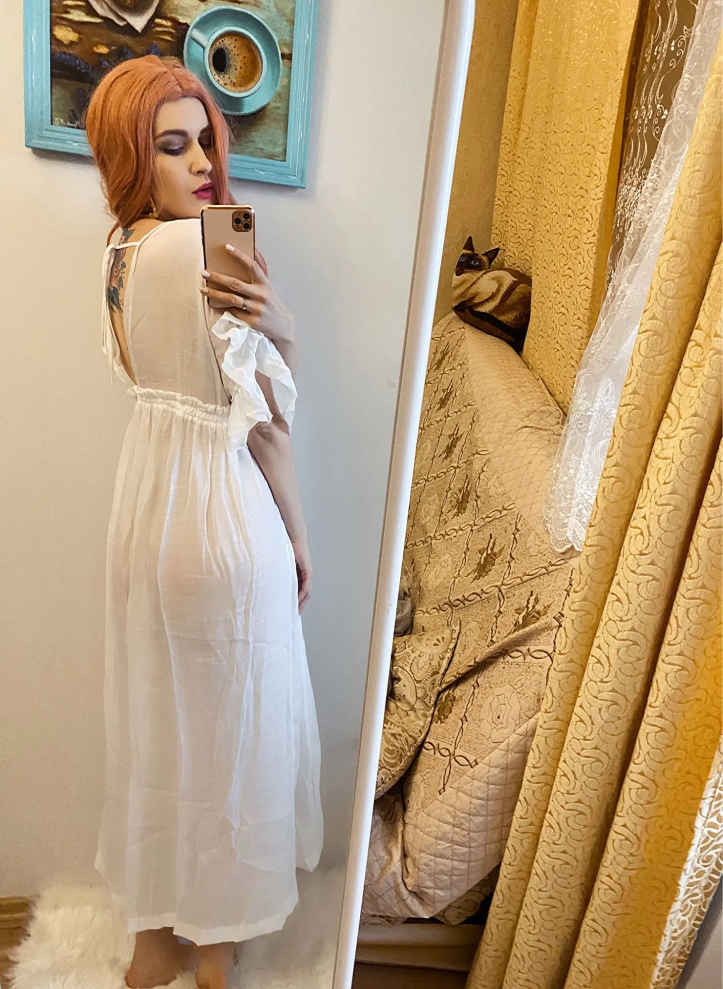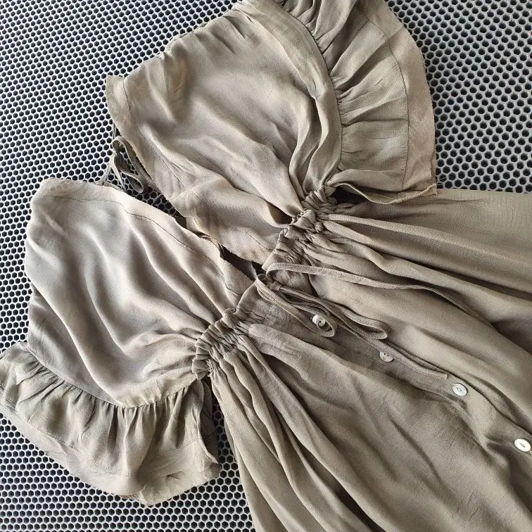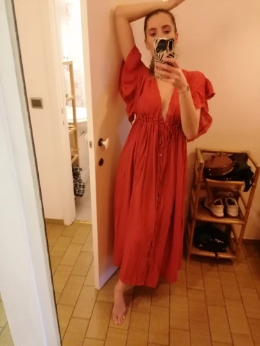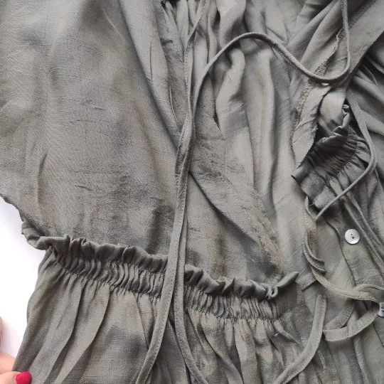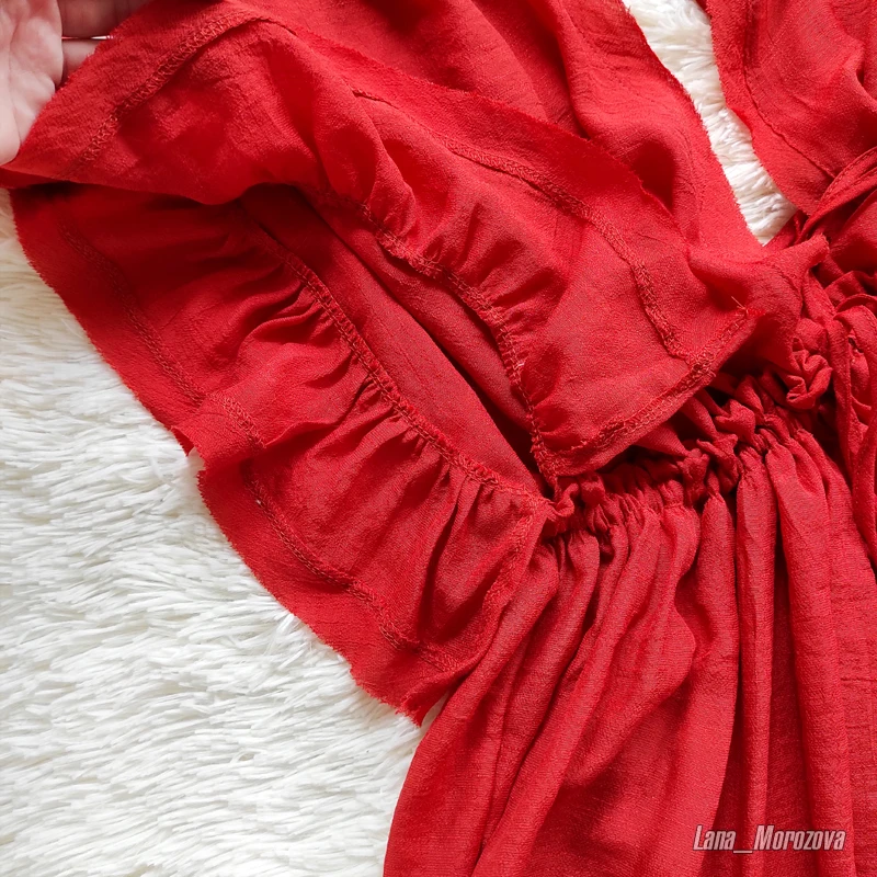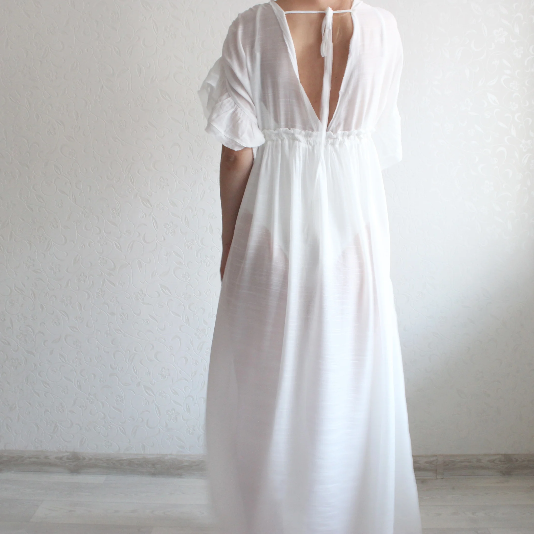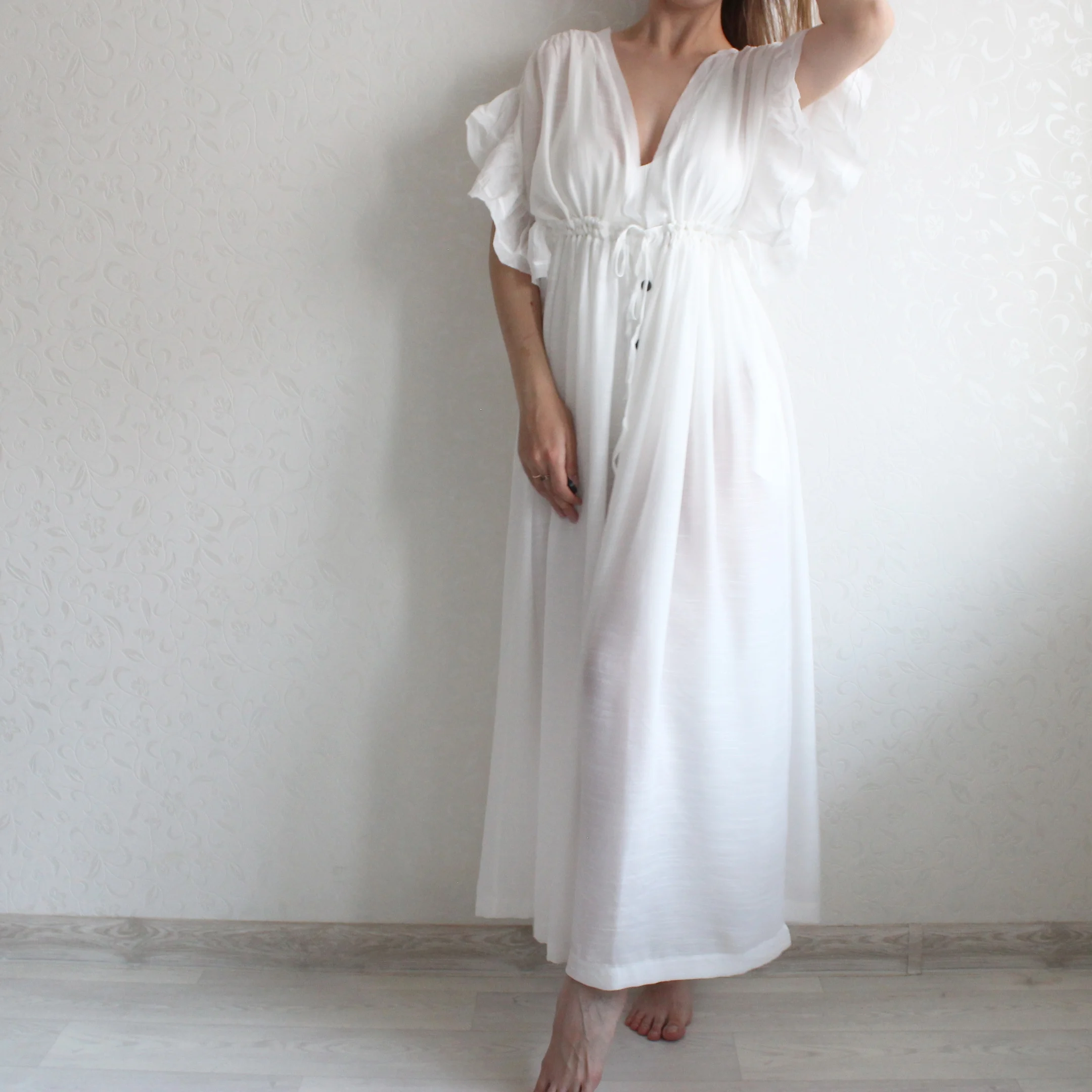 Пляжное платье которое не хочется снимать ♥ Регулируется завязками под грудью, подойдет от 40 до 50 размера. Материал указан полиэстер, но ткань очень легкая, воздушная, приятная к коже. Будет хорошо пропускать воздух в жару. Я бы это синтетикой не назвала, по тактильным ощущениям. Есть карманы по бокам, также юбка застегивается на пуговицы. Спинка с V- образным вырезом. Рукава очень красивые, это изюминка этого платья. Не сказала бы что оно очень сильно просвечивает. На рост 171 см длина почти до пят. Мои параметры 84-77-93. Платье к покупке советую, оно достойное!