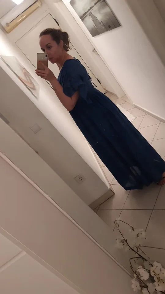 Платье прибыло очень быстро, незадолго до дня рождения... о. Я благодарю продавца за его отзывчивость. Что касается платья, ткань имеет красивый блестящий эффект, как блестящий, слегка прозрачный. С другой стороны, отделка очень плохого качества, платье короче сзади, чем на 4 см. Так как это один размер подходит всем людям, оно очень широкое, слишком даже. Моя жена должна была забрать все обратно, и это не закончено. Я немного сожалею об этой покупке.