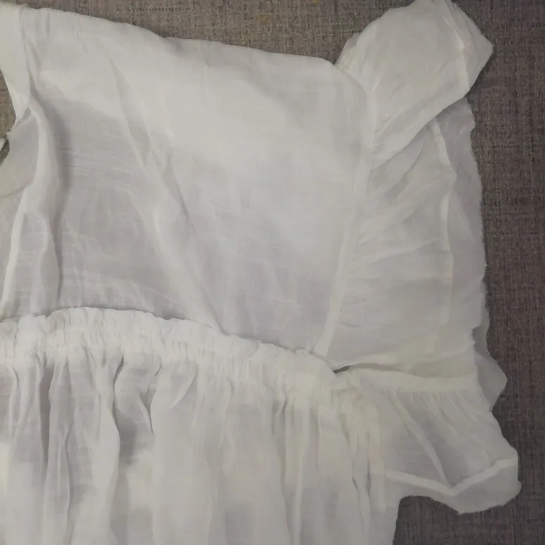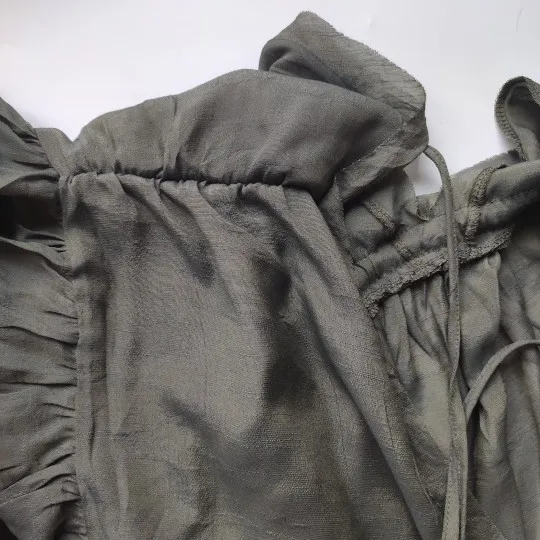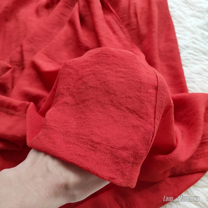 Все как в описании только край по горловоне и рукаву не обработан, как волан обрезан по косой, и край просто обрезан.