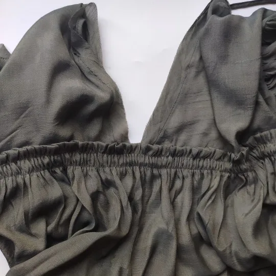 Спасибо за товар ! Ткань легкая , цвет красивый , смотрится богато , ткань типа марлевки , приятная на ощуп.Модель оболденная . На отпуск самое то .