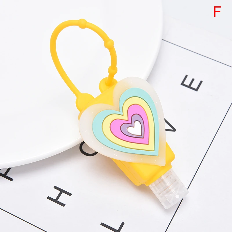 Спецификация:Состояние на 100% абсолютно новыйМатериал: силикон + пластикФорма: мультфильмЕмкость: 30 млРазмер: как показано на картинкеУпаковка включает: 1 шт. * держатель для дезинфицирующего средства для рук