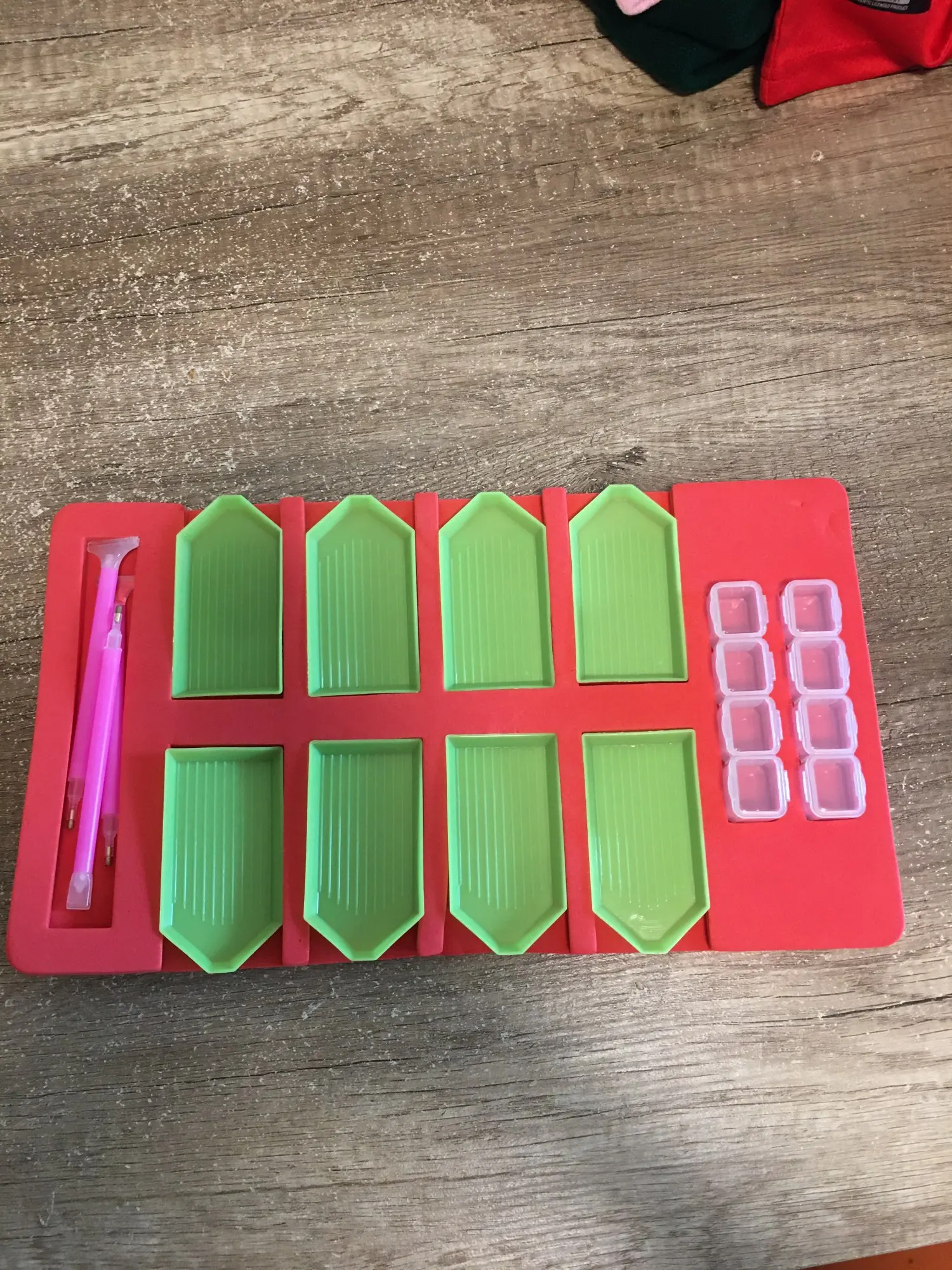 Это произошло очень быстро. Прямо как на картинке. Good way to have Everything organized. Основание выполнено из резины eva, полоска немного повреждена при зажиме на бриллиантах, но это не раздражает. Не нужно было связываться с продавцом