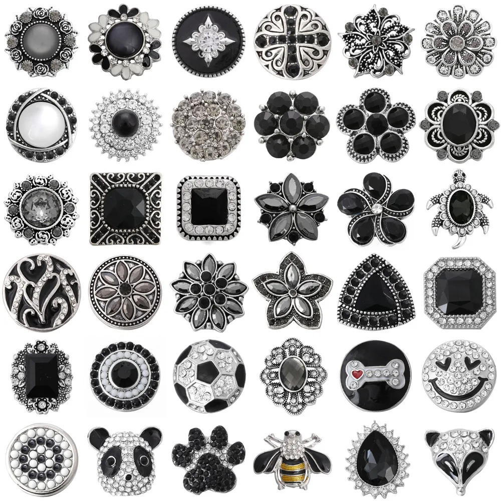 6 шт.лот оптовая продажа черные кнопки ювелирные изделия смешанные Стразы 18 мм кнопки подходят для браслета ожерелья очаровательные ювелирные изделия