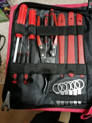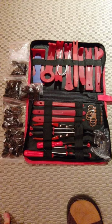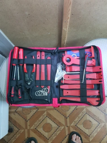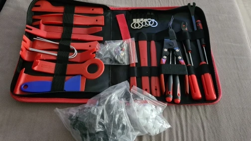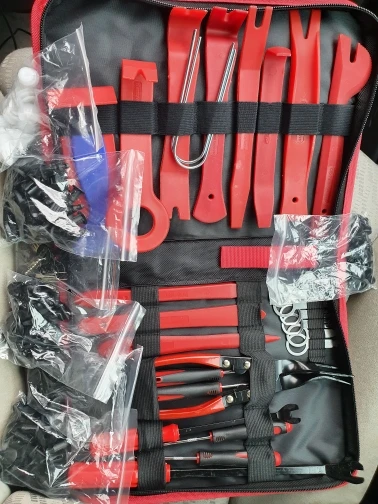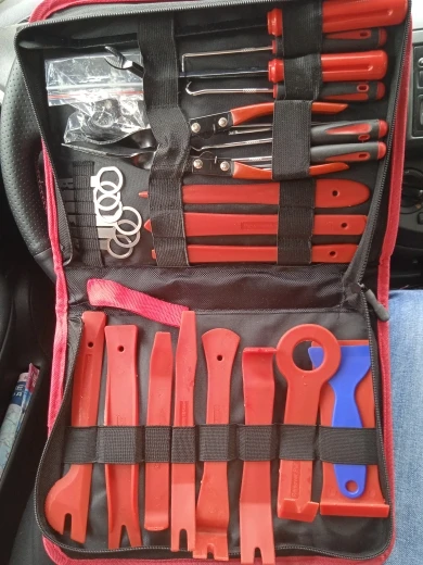 Слабый пластик и толстое окончание, невозможно поддеть ни пластик ни клипсу, даже карту двери снять не способны. Набор для клемм тоже хлипкий. Кейс очень мякгий и хлипкий. За эту сумму лучше искать ни в Китае
