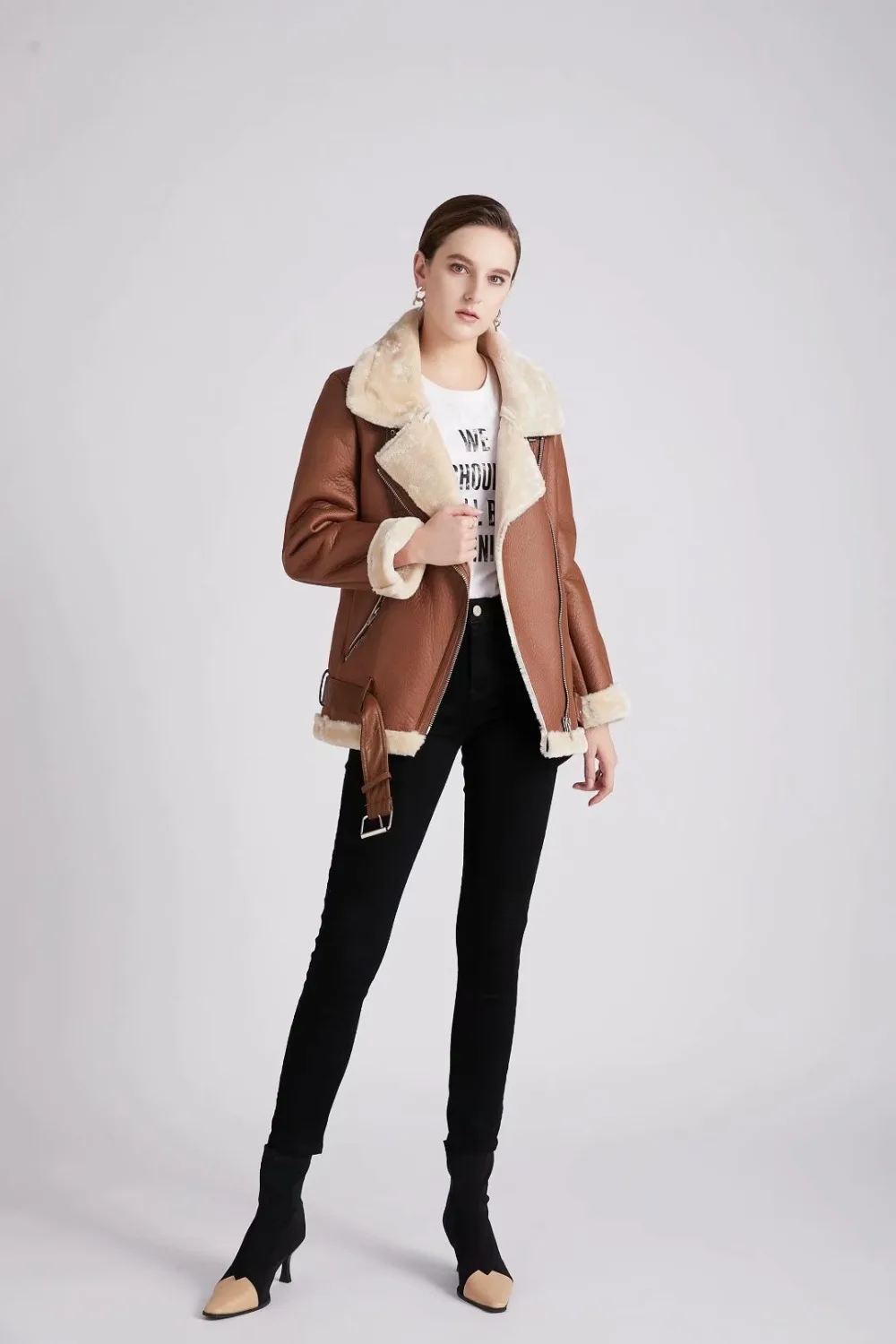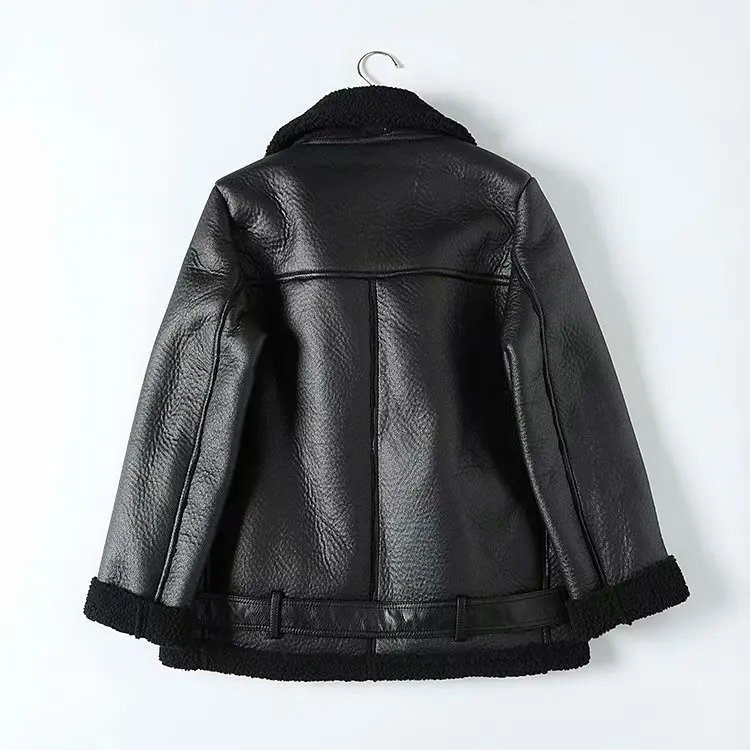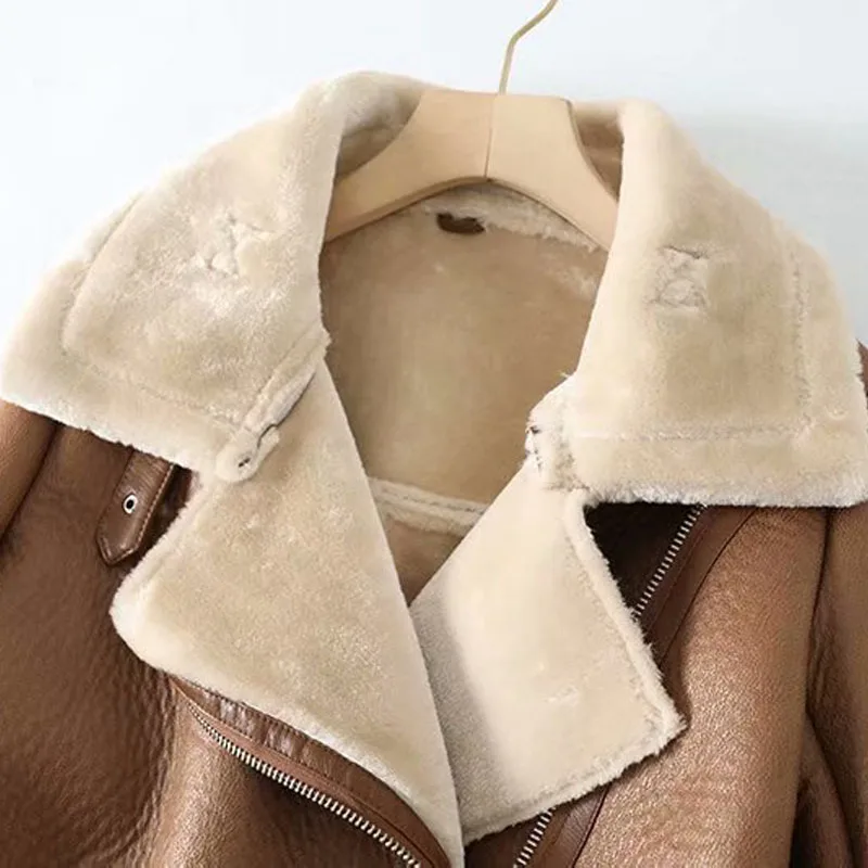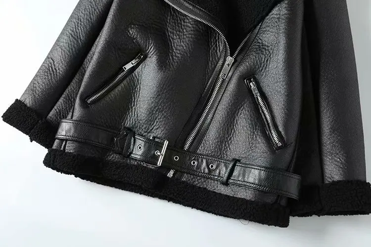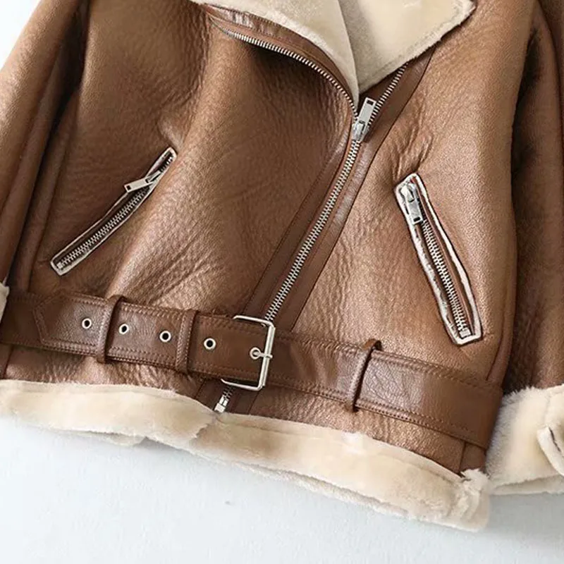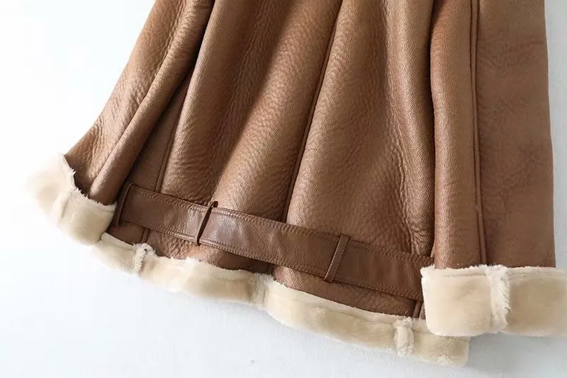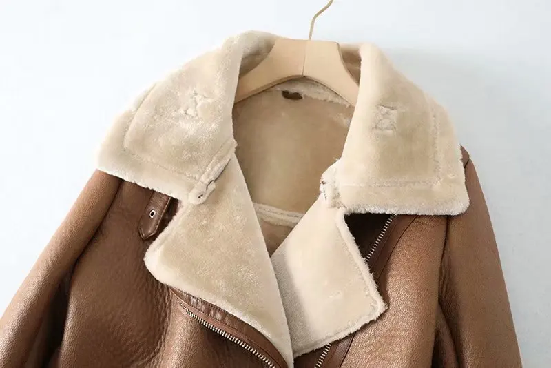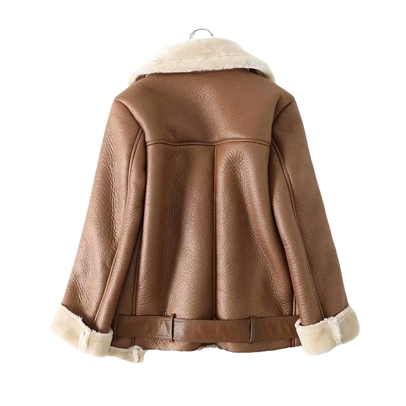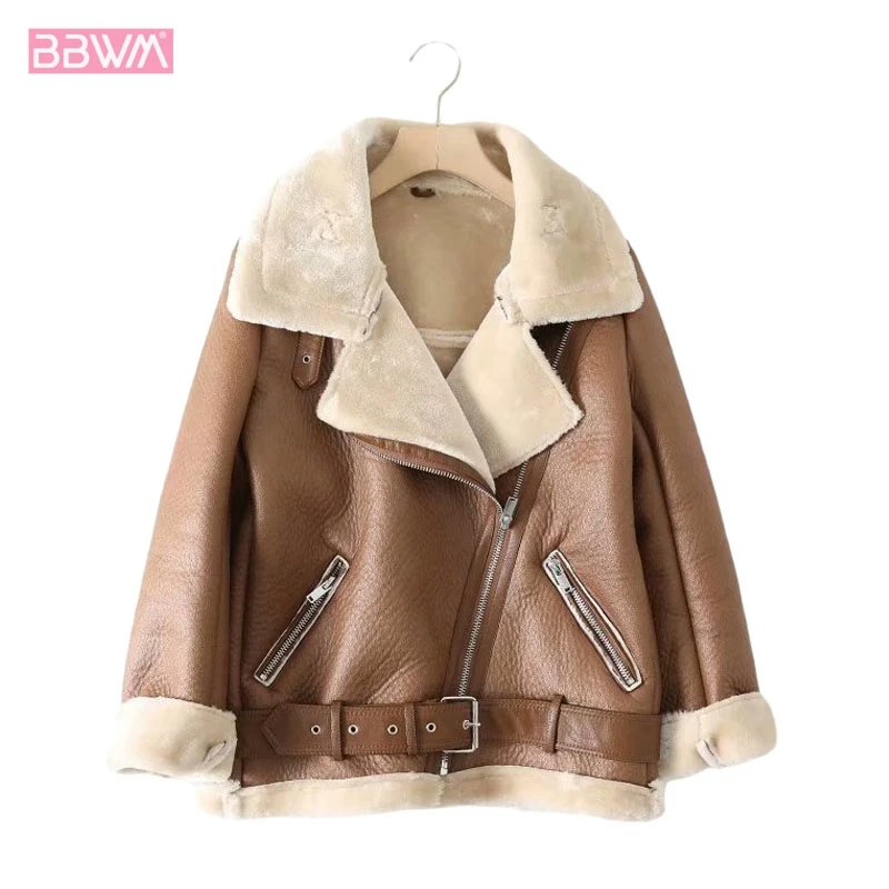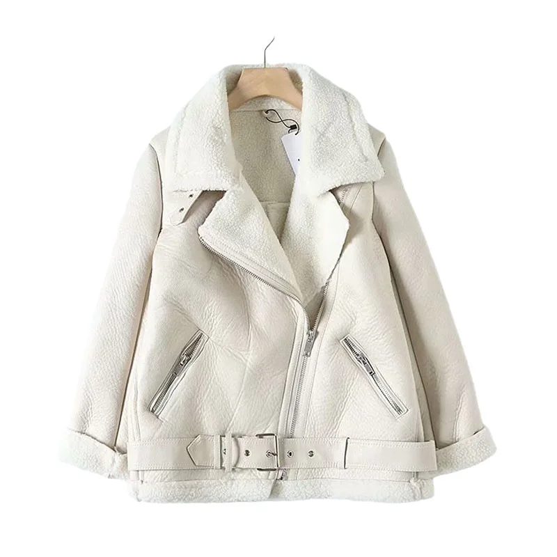 Женская куртка из искусственной кожи, с лацканами и поясом, плотная, теплая, винтажная, бежевая, большого размера, на молнии