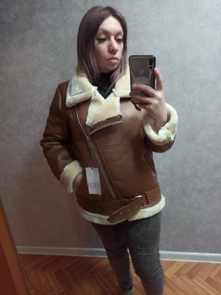 отличная дублёнка качественно сделана, хорошая фурнитура, очень эффектно этот цвет смотрится, есть некий золотой оттенок, очень идёт блондинками. с бирками Зара, продавец сначала куда то пропал, потом стал отвечать, как и у всех были проблемы с таможней с отправкой. брала на 94-85-103, рост 176 см, подошло идеально