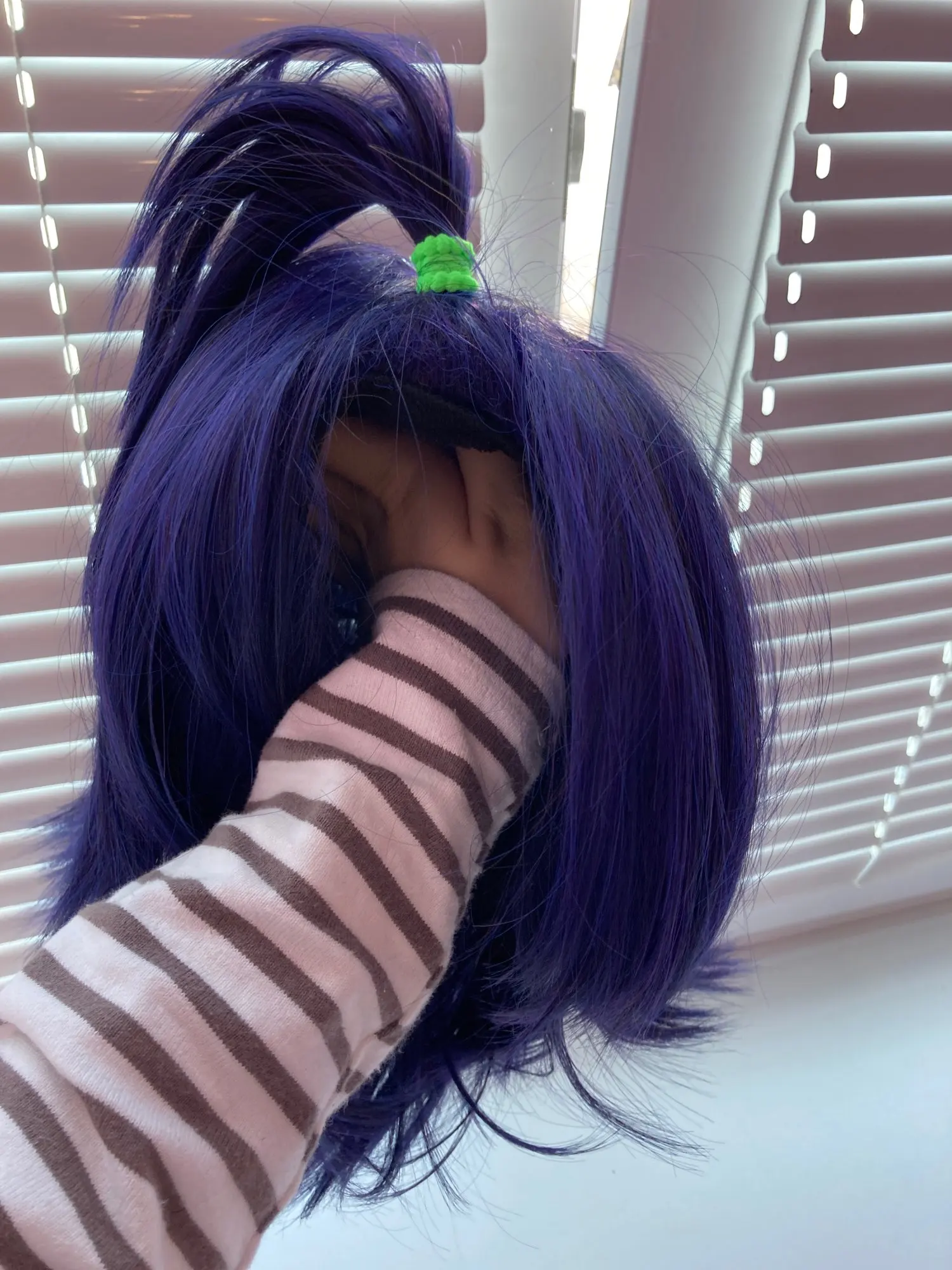 Парик очень хороший, bluer, чем фиолетовый, но все еще похож на персонаж