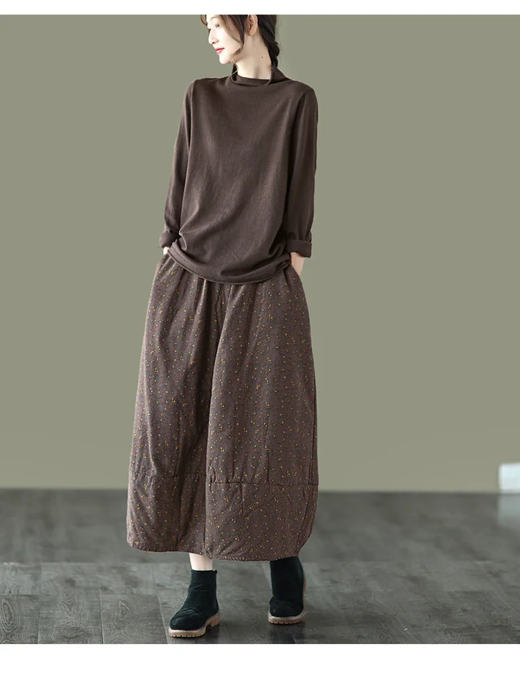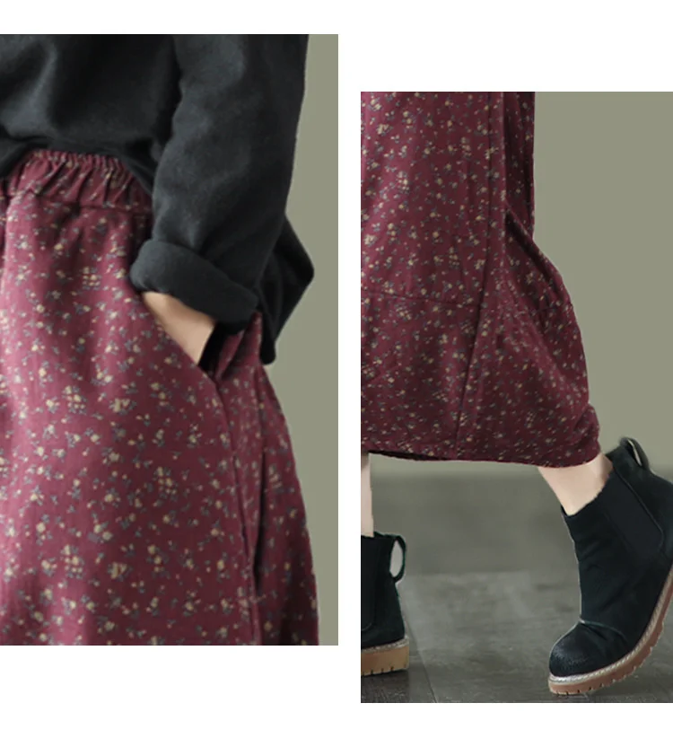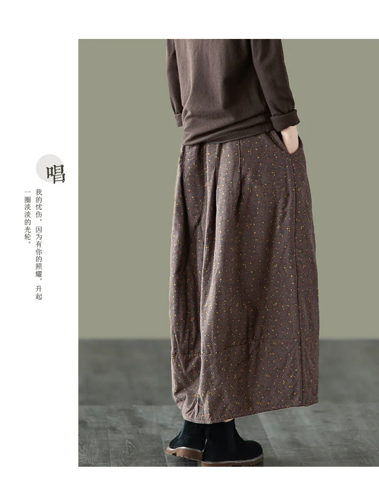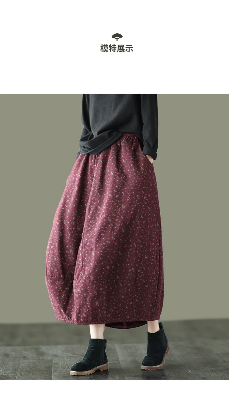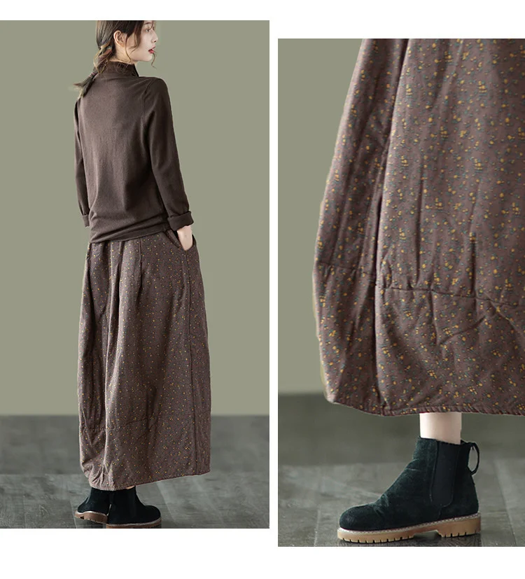 Юбка NINI WONDERLAND Женская хлопковая, свободная утепленная юбка с цветочным принтом, с эластичным поясом, юбки Mori для девочек, Осень-зима 2021