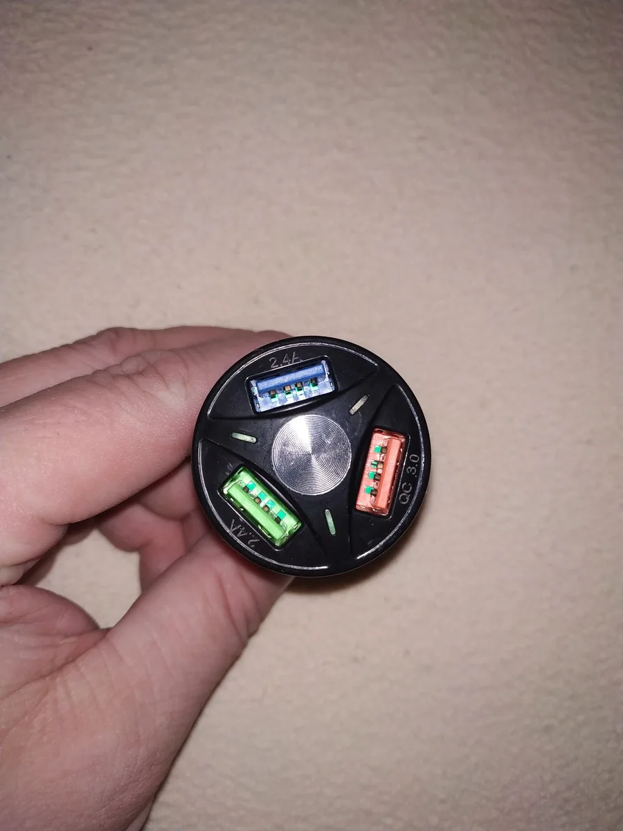 Нормальный зарядник, лёгкий , не плотно сидит в гнезде, брал с 3 выходами. Быстрая зарядка есть, собран вроде нормально. Присутствует тусклая подсветка (считаю это нормальным)
