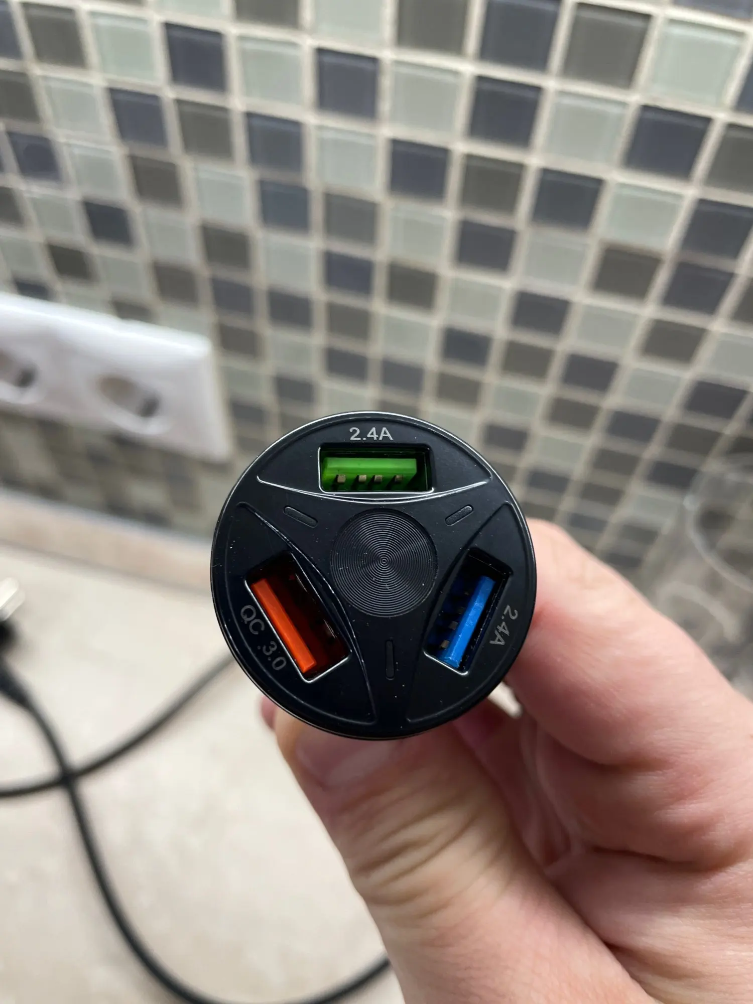 Отличная зарядка, сразу подключил к ней видеорегистратор и телефон. Проблем никаких, телефон заряжается быстро.