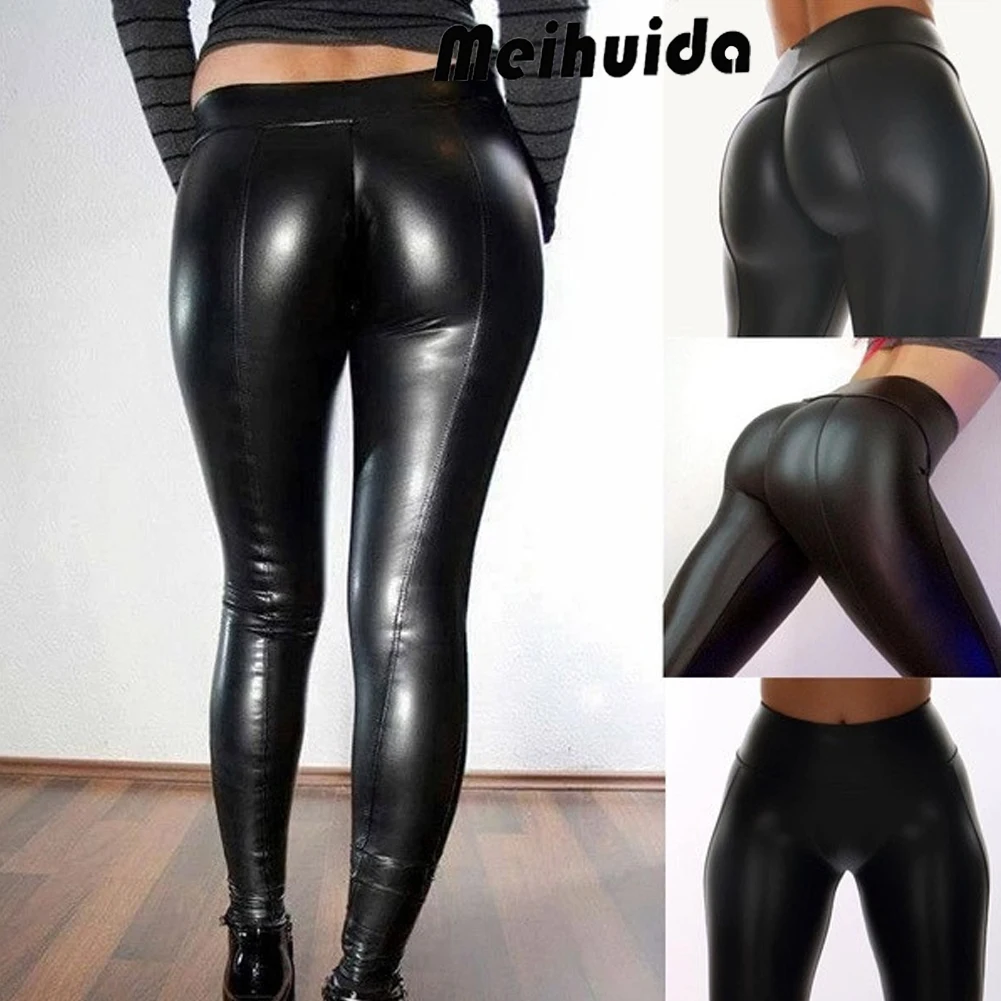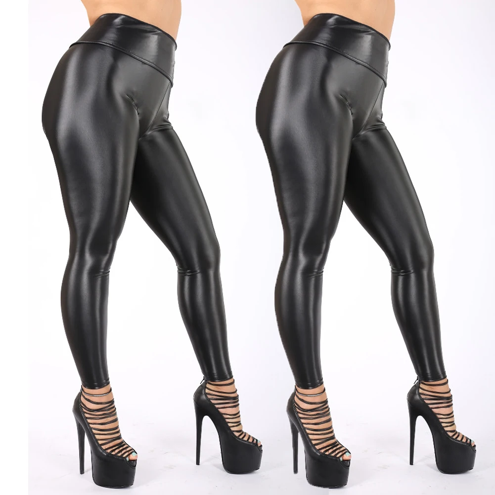 Леггинсы женские, из искусственной лакированной кожи, с мокрым эффектом