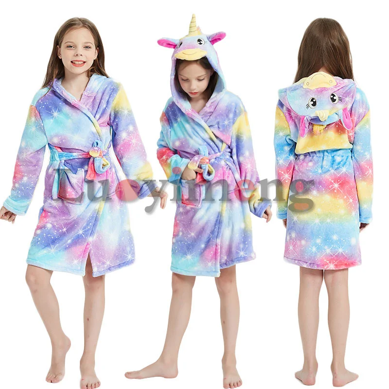Зимние халаты для девочек, фланелевые банные халаты с единорогом, н...
