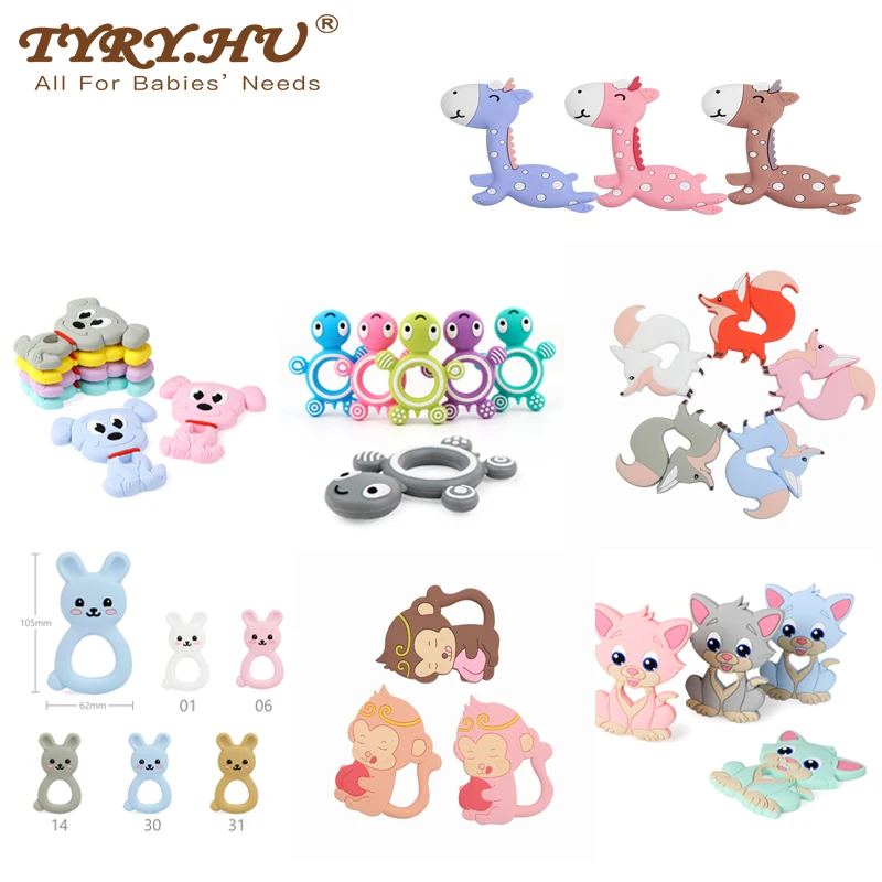 Прорезыватель для зубов TYRY.HU, 1 шт., из пищевого силикона, с изображением животных, для детей, жевательная для прорезывания зубов, подарок, аксессуары, не содержащие бисфенола А