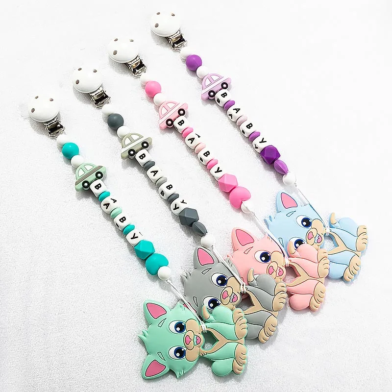 1: силиконовый Прорезыватель 2: зажимы для соски 3: бусины-бусины с буквами/круглые бусины 4: веревка