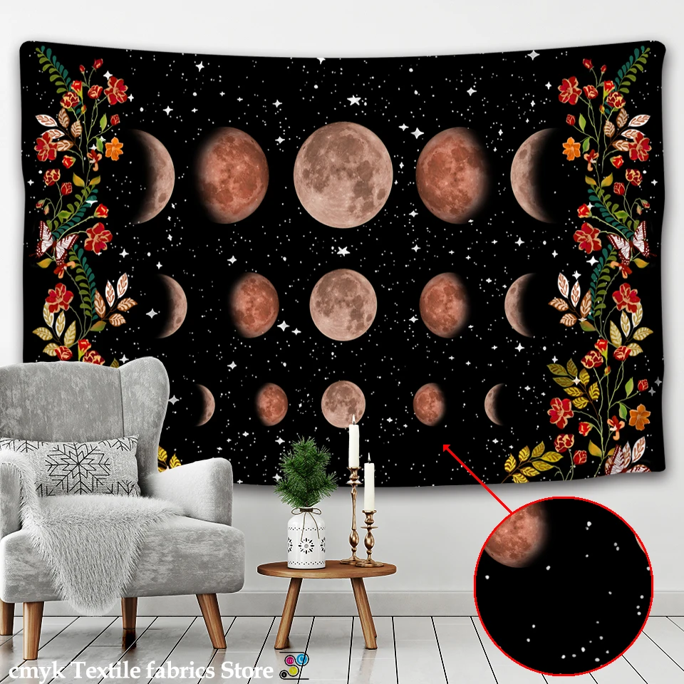 Психоделическая Луна гобелен со звездами цветок настенный комнатный ковер небо общежитие гобелены искусство украшения дома
