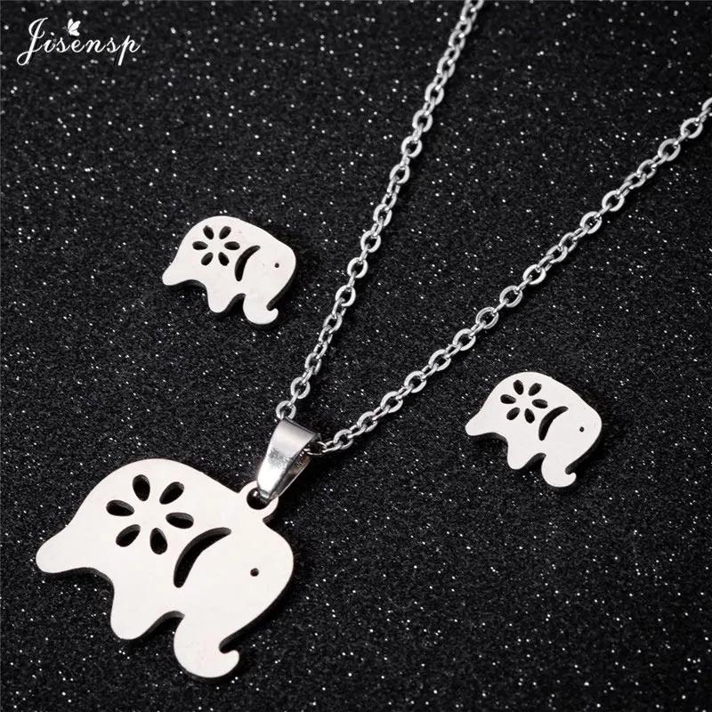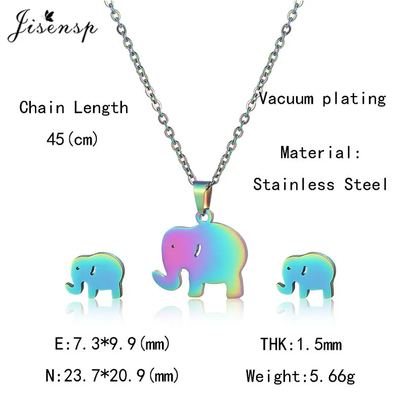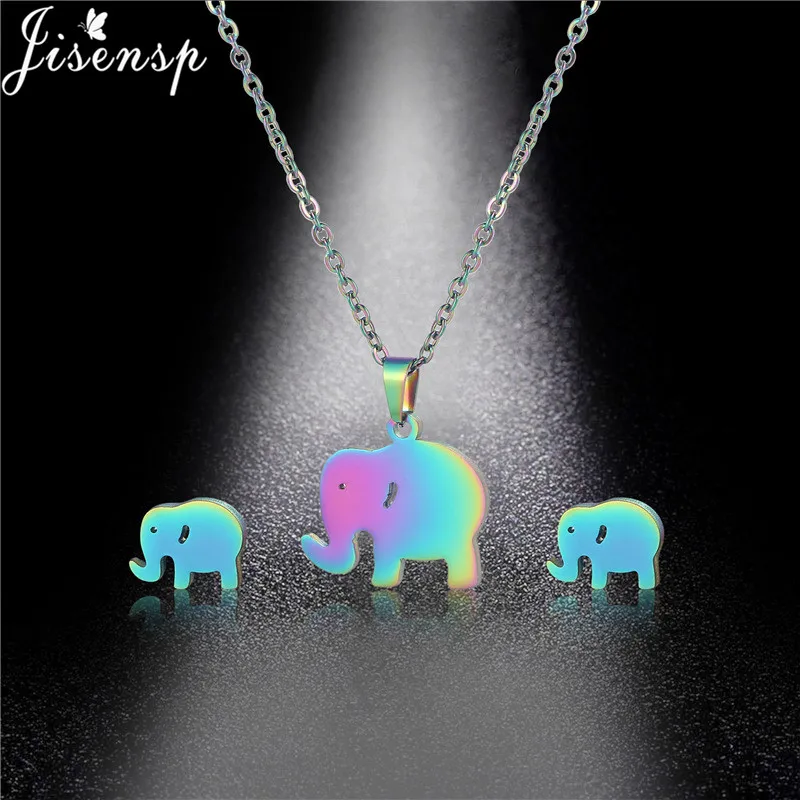 Jisensp прекрасный слон кулон ожерелье серьги для женщин Красочные Ювелирные наборы из нержавеющей стали модные аксессуары bijoux