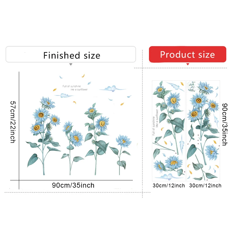 Синие настенные наклейки с подсолнухом для гостиной, спальни, дивана, фон, Настенный декор, виниловые ПВХ настенные наклейки, художественные фрески, украшение для дома