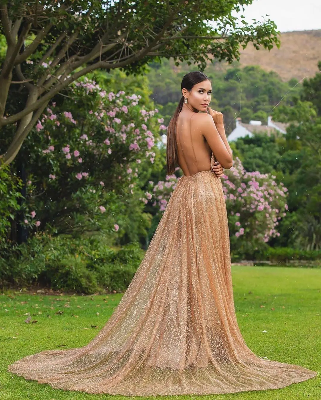 Женское длинное вечернее платье, розовое золотистое платье на тонки...