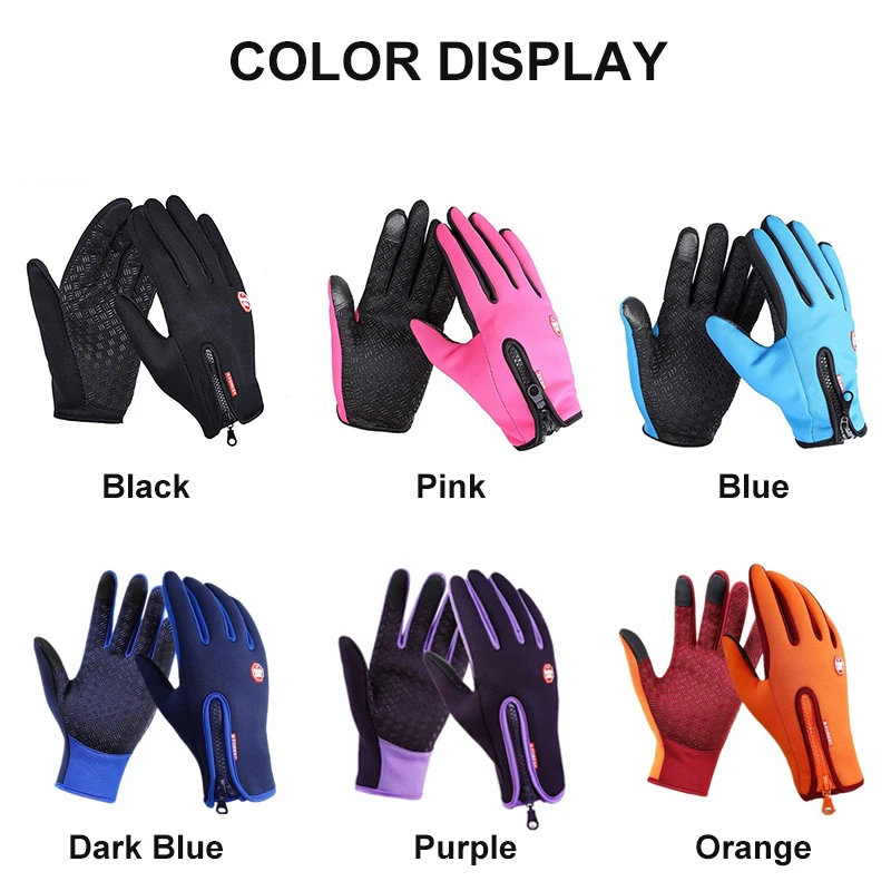 Мужские зимние теплые перчатки для работы с сенсорным экраном, водонепроницаемые мужские лыжные рандомные ветрозащитные Нескользящие перчатки на молнии для спорта на открытом воздухе для верховой езды