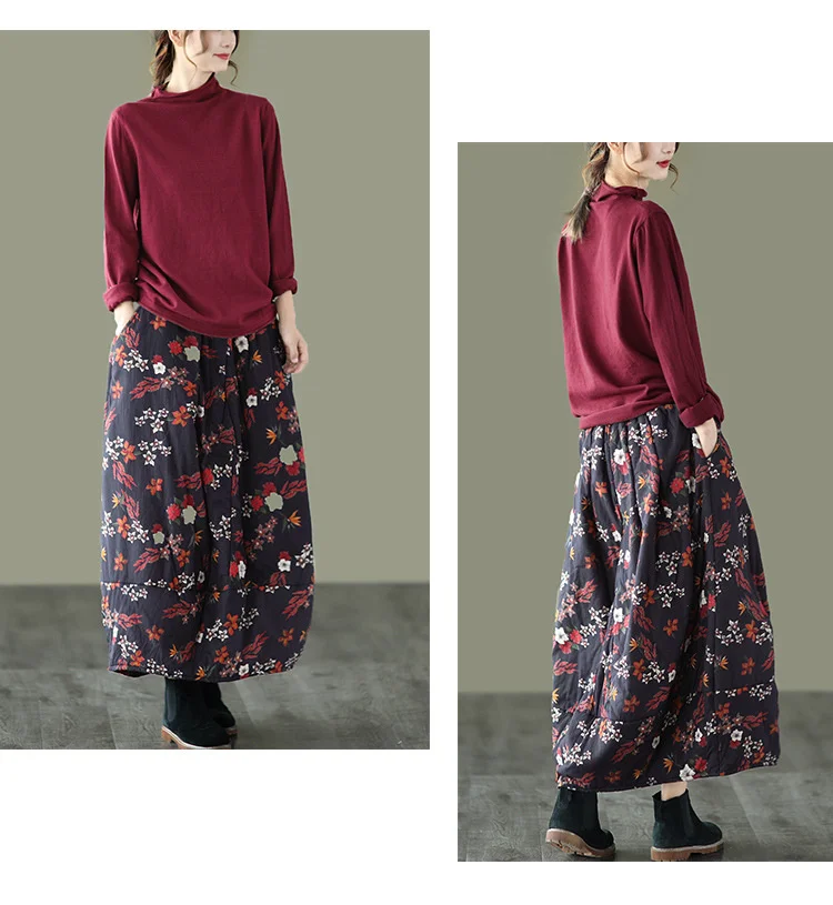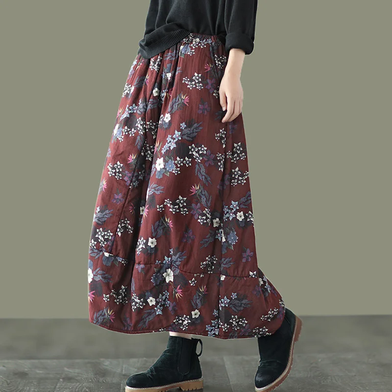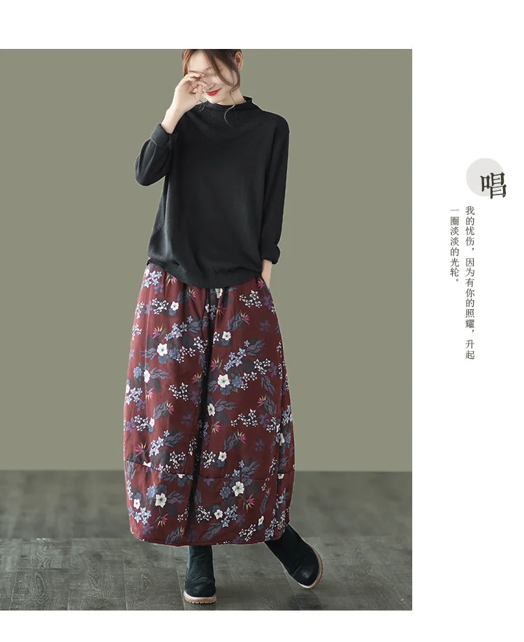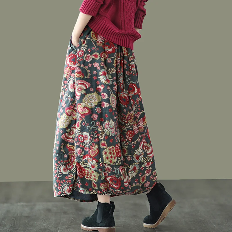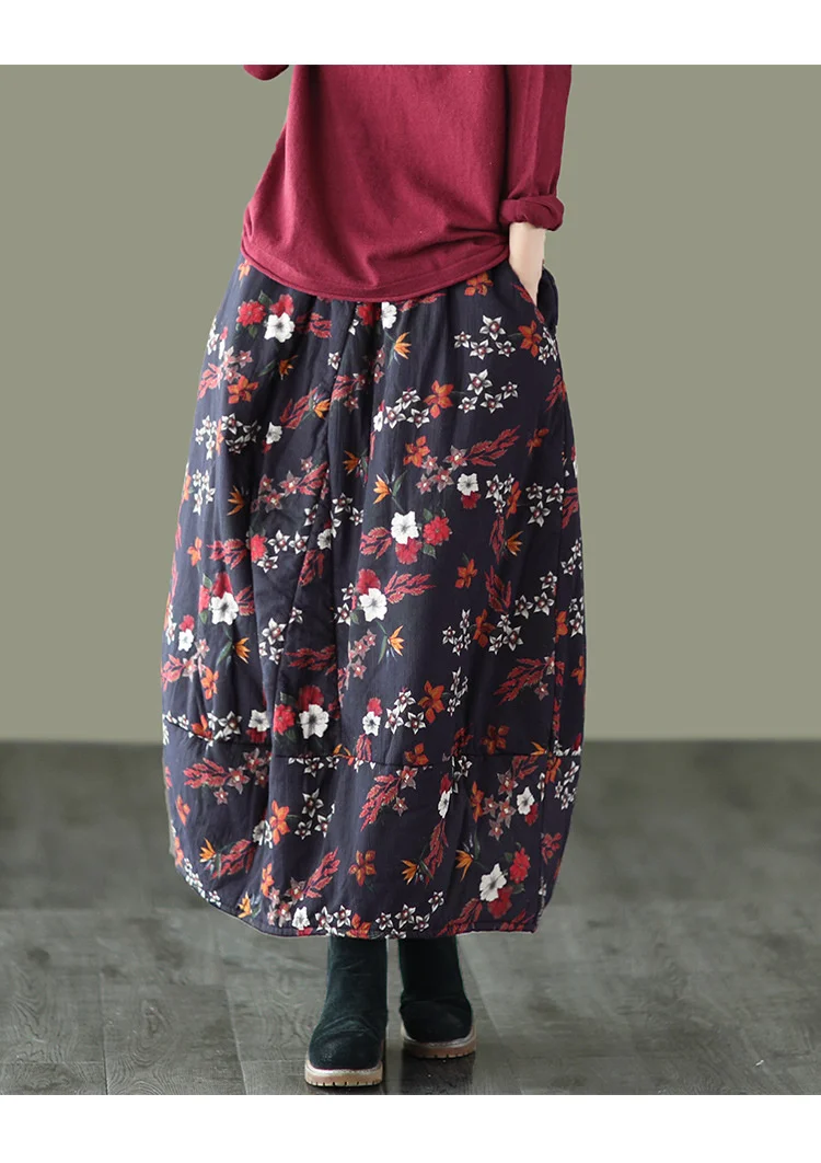Юбка NINI WONDERLAND женская утепленная, хлопковая юбка средней длины с цветочным принтом, с эластичным поясом, свободная, Осень-зима 2021