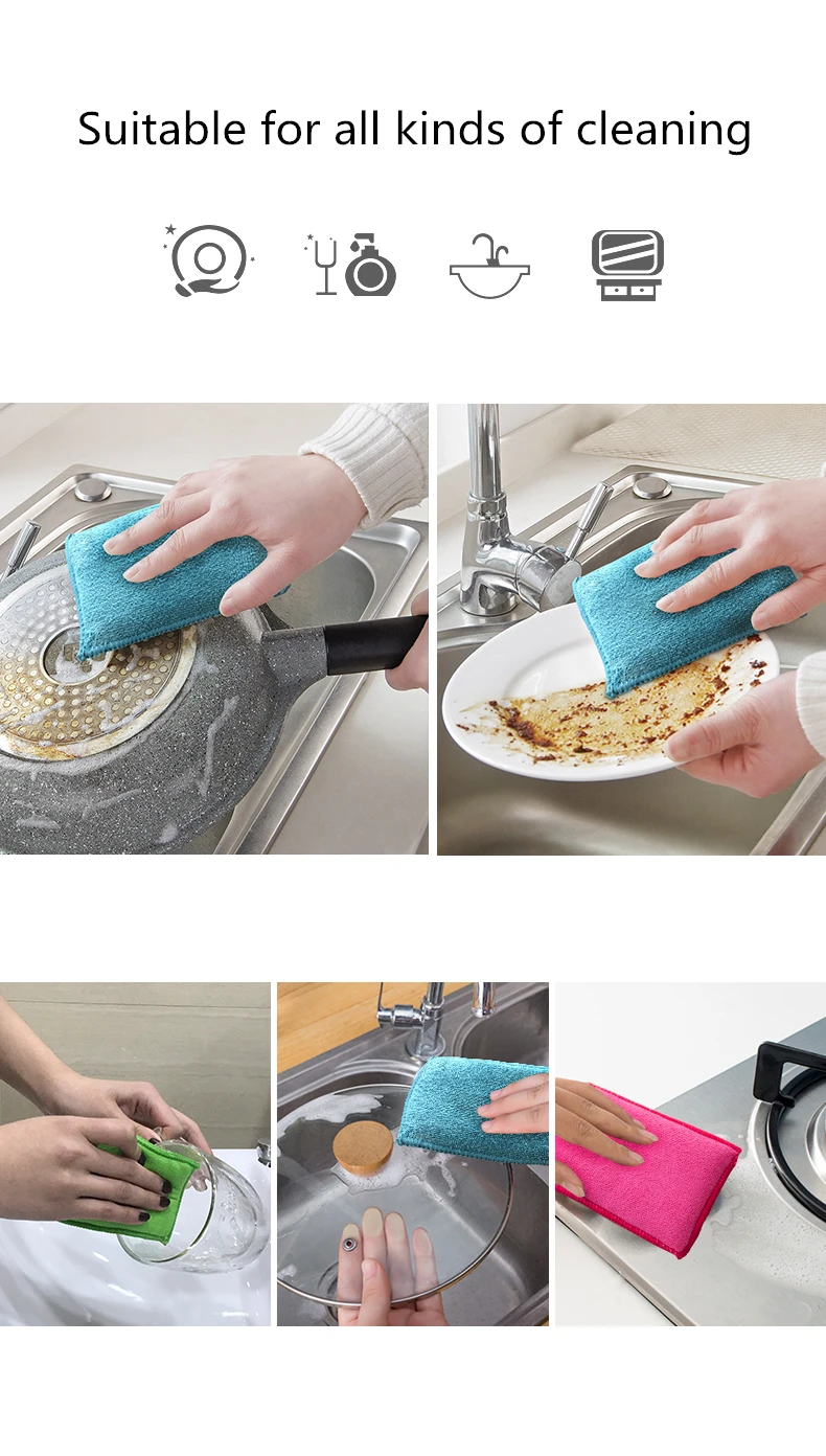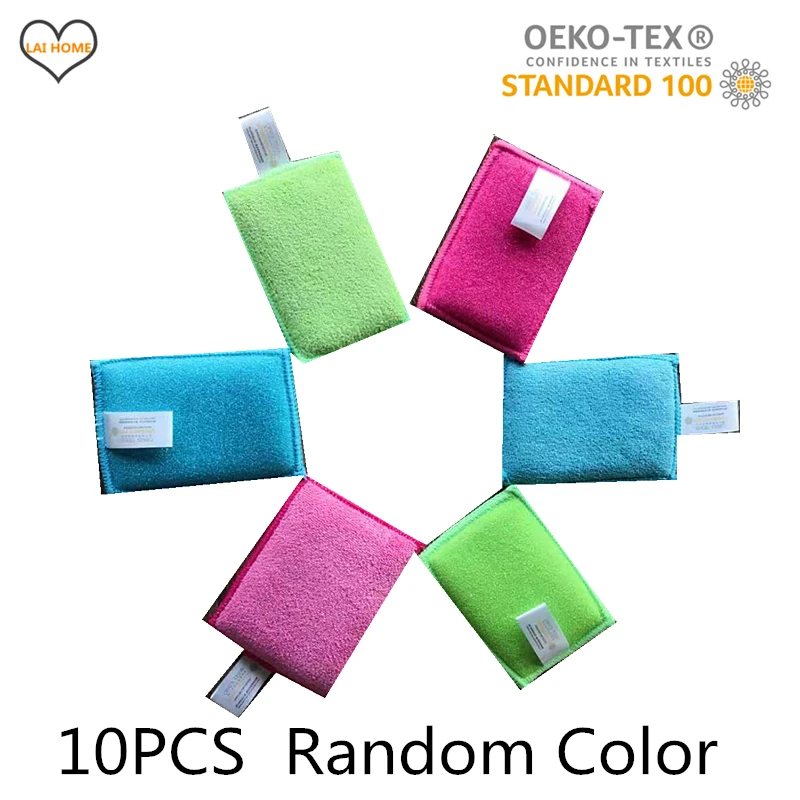 10 шт брендовый кухонный Скраб Губка для удаления пятен чая кофе Чистящая прокладка двухсторонняя трение микрофибра чистящие губки Антибактериальный и без запаха дропшиппинг Кухонные инструменты Гаджеты Уборка дома