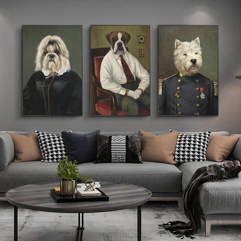 Фоновая фотография в стиле ретро художественный собака был одет в военную форму масла Картины на холсте стены Плакаты и принтами собак картинки для украшения стен дома