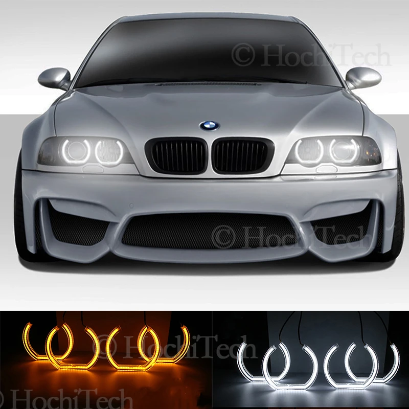 Переключаемые кольца с двойным янтарным белым кристаллом C LED Angel Eyes Halo для BMW E46 325i 325xi 330i 330xi с HID фарами 1999-2005