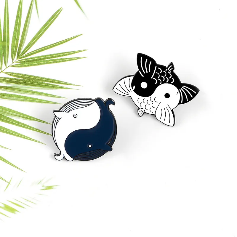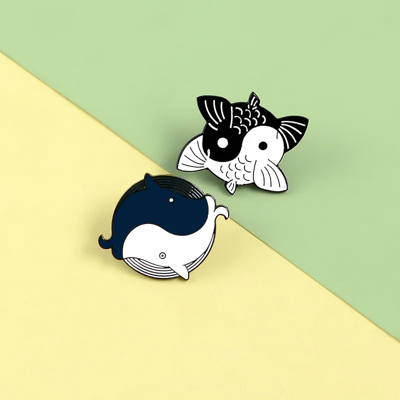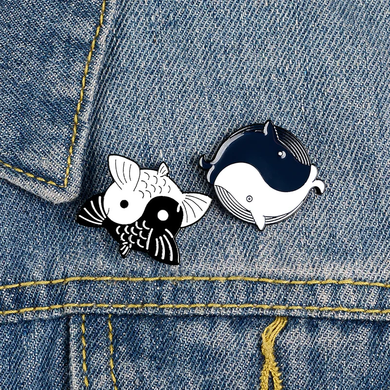 Брошь Инь-Ян с рыбой, мультяшная, милая, кофта с Китом, значки с эм...