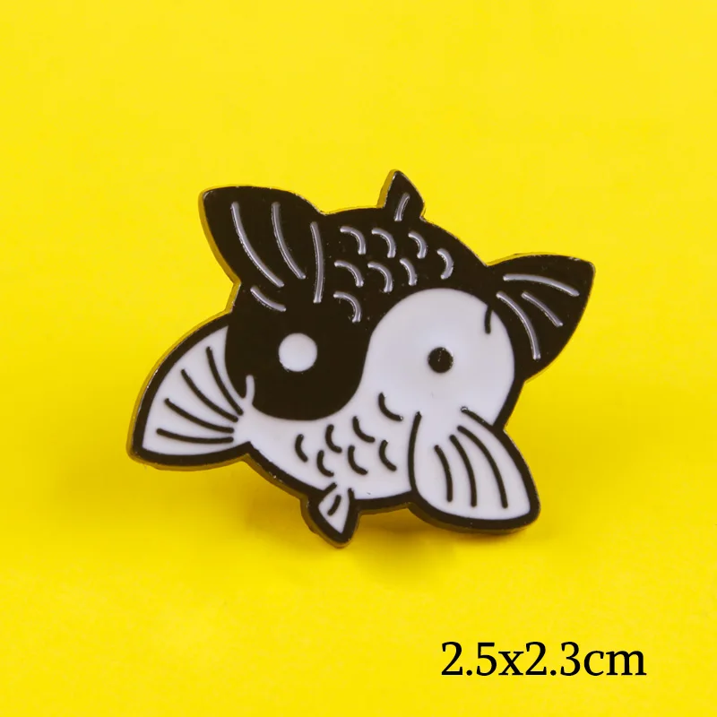 Инь Ян тайчи кои эмалированная булавка КИТ Броши рыба одежда рубашк...