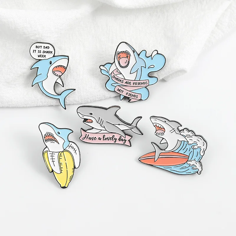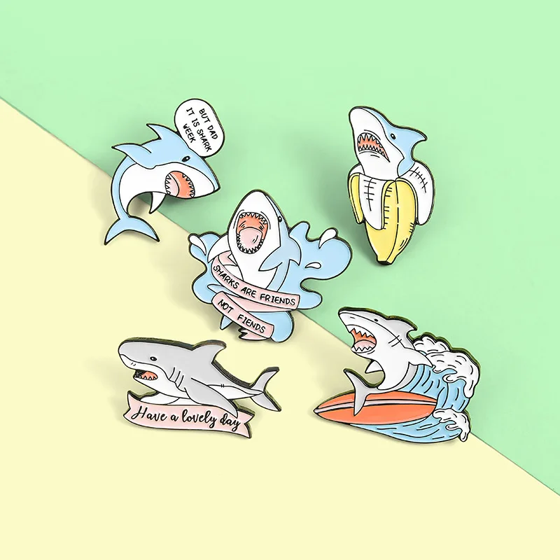 Мультяшная Акула мама папа значок милый и забавный серфинг банан Акула эмалированная брошь хороший праздник значок лацкан рюкзак ювелирные изделия подарок