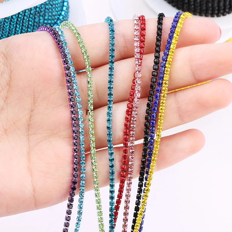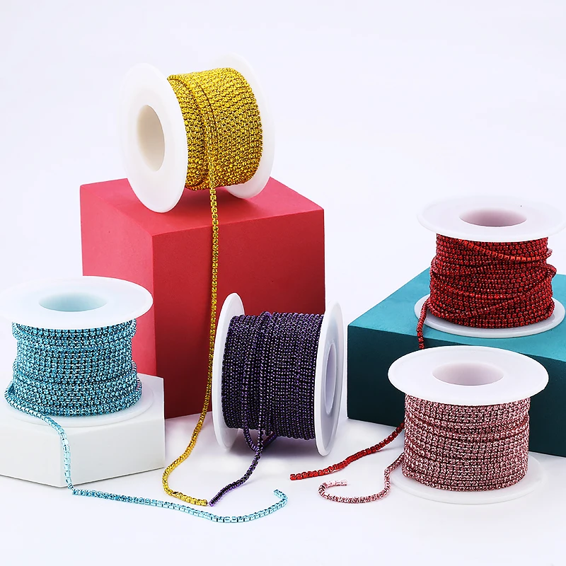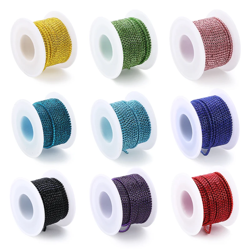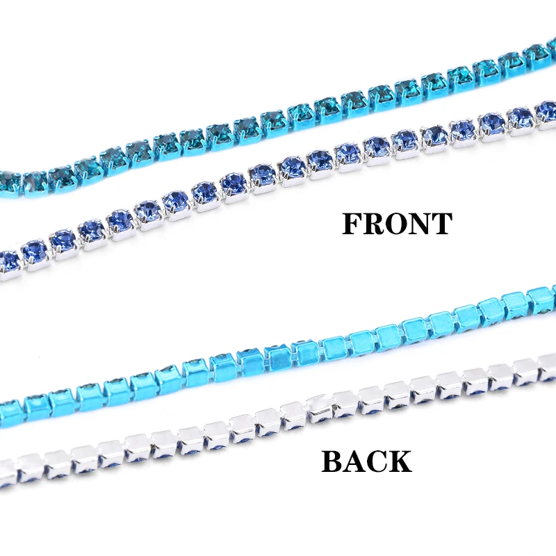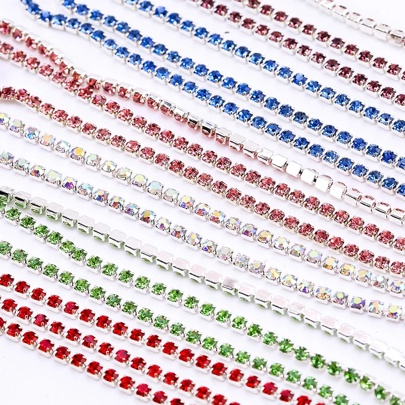 Цепочка для стразы, 2 ярда, серебряная основа, стеклянные стразы, цветные стразы, цветная отделка, нижняя металлическая цепочка для украшения сделай сам