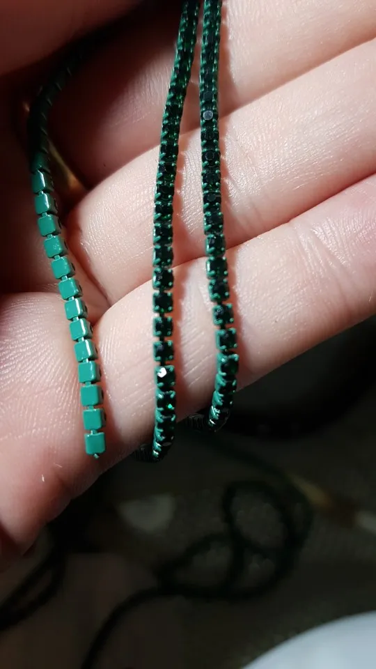 стразовая цепочка просто отличного качества!!! абсолютно без брака, все камни на месте. мелкая. аккуратная. то, что цапы тоже черные как и камни - вообще шикарно смотрится! я осталась ОЧЕНЬ довольна!!! доставили сравнительно быстро - чуть больше 2-х недель. очень красиво смотрится. рекомендую всем и товар и продавца!