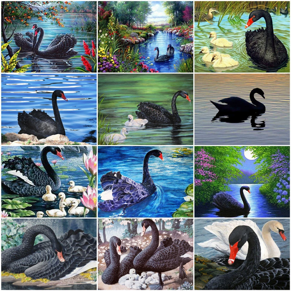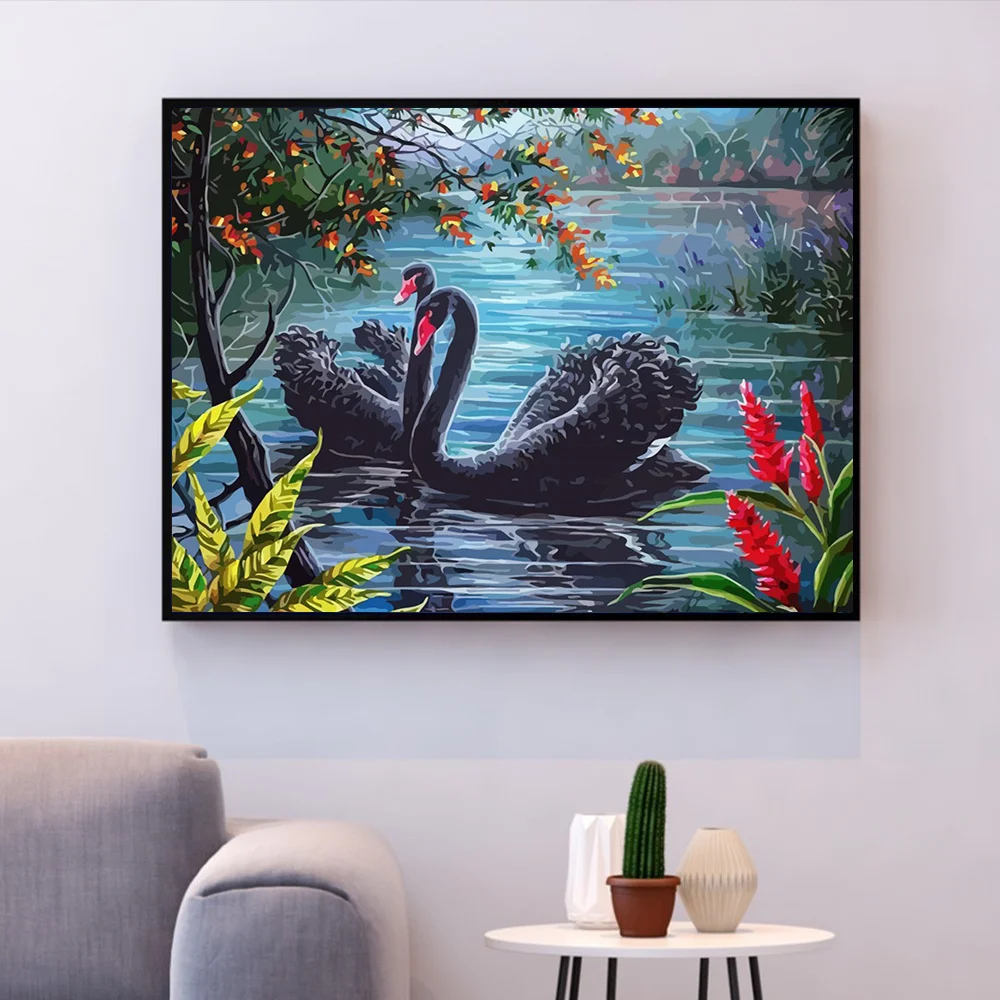 HUACAN рисовать по номерам красками картины лебедь рисование по номерам акрил животное искусство стены