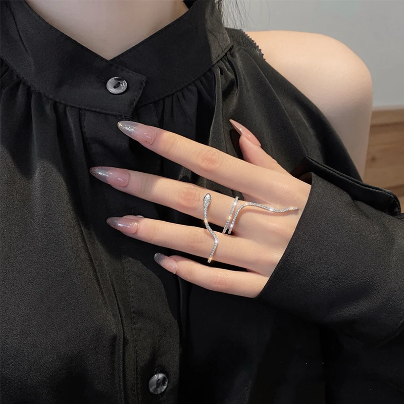 HUANZHI Новая мода Панк в форме змеи Хип-Хоп Кристалл Золото Серебр...