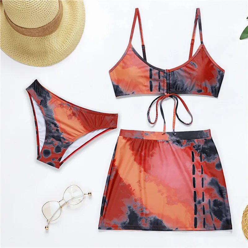 Купальник-бикини с завязками Peachtan, купальник-бандо, Женская юбка, комплект из 3 предметов, купальники с кулиской, женский сексуальный купальный костюм, бикини со складками, 2021